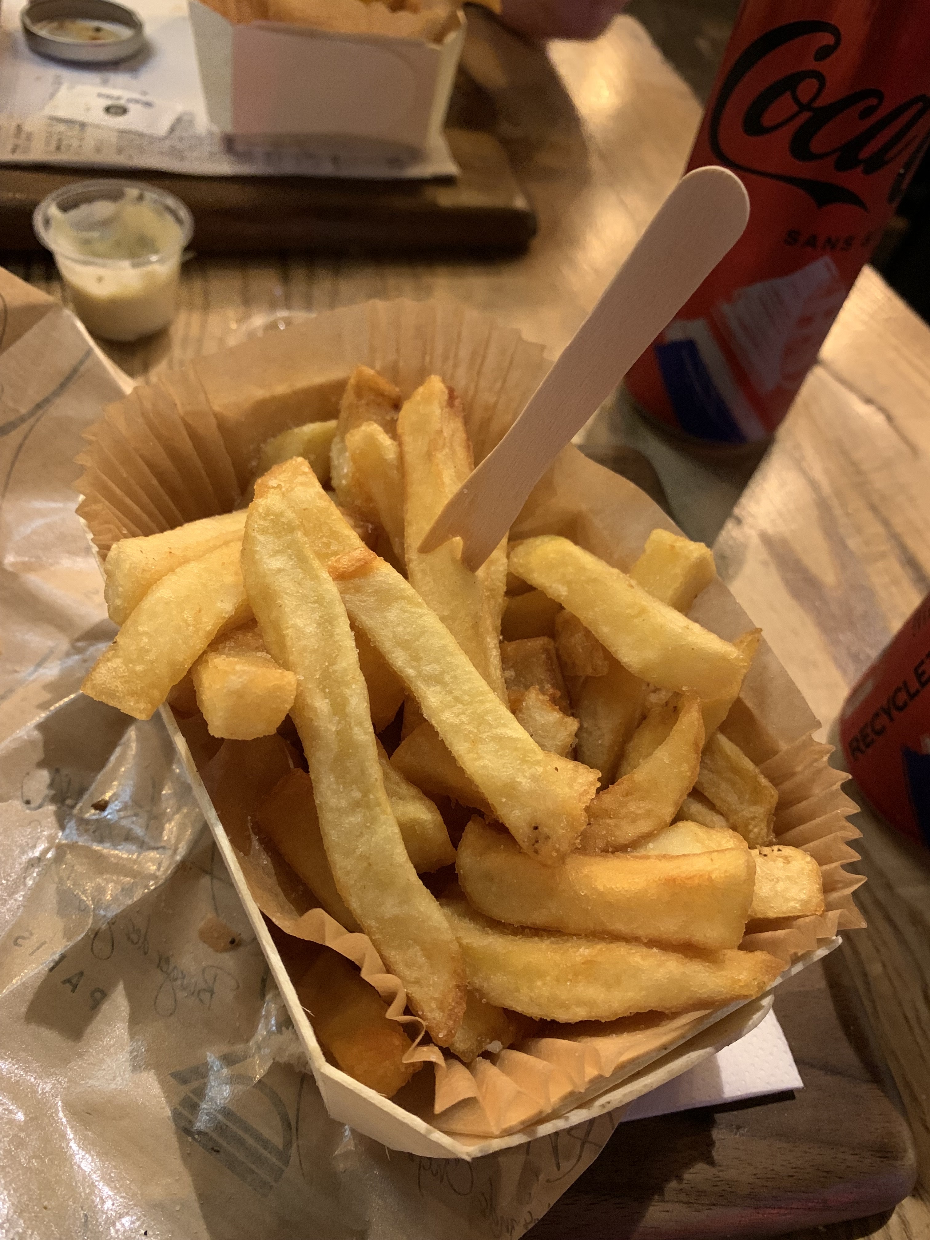 Les Burgers sont bons sans être renversants, Montmartre & Notre Dame pour mon amie et moi, pains à burgers un peu trop... Aériens, cuissons respectées mais nos deux burgers sont arrivés tièdes, c'est fâcheux non !? frites excellentes, la dessus rien à dire.