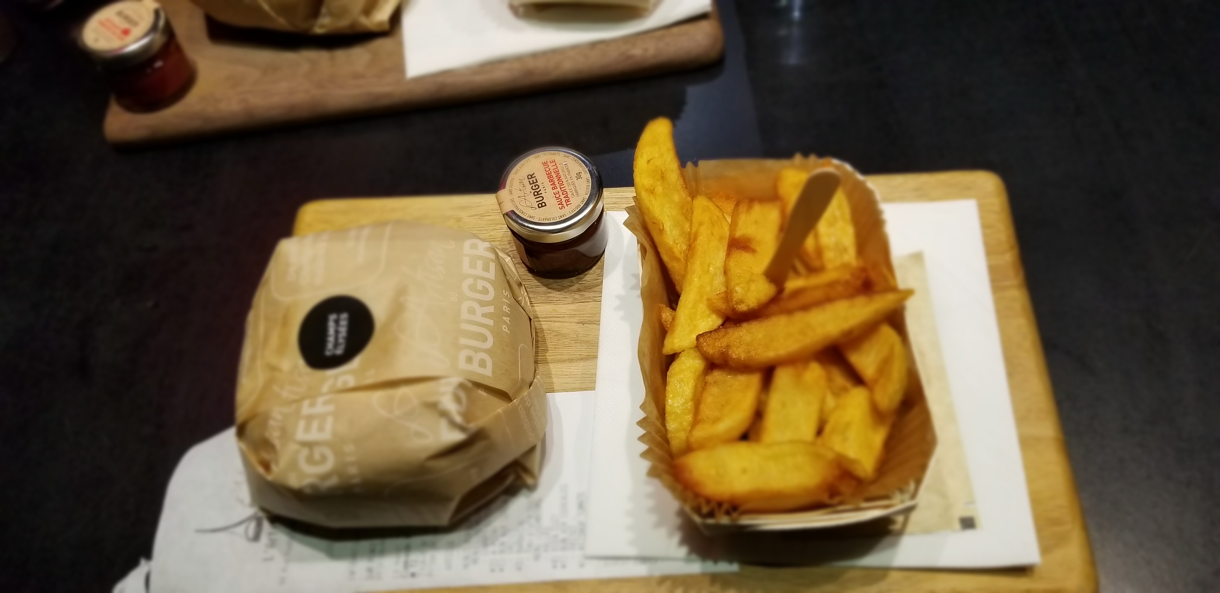 J’ai bien aimé le Montmartre (reblochon) pain Normal ( confits d’oignons un peu sucré mais délicieux !) J’ai moins apprécié le Champs-Élysées avec le pain charbon ( ça manque d’harmonie dans la bouche : on a le goût des ingrédients séparés pain + viande + reste ) mais pas le concept Burger 🍔 Serveuse avec grande boucle à l’oreille, lunettes, pas très grande 😅 elle est adorable, professionnelle et à l’écoute ! Prix / qualité = Bien +