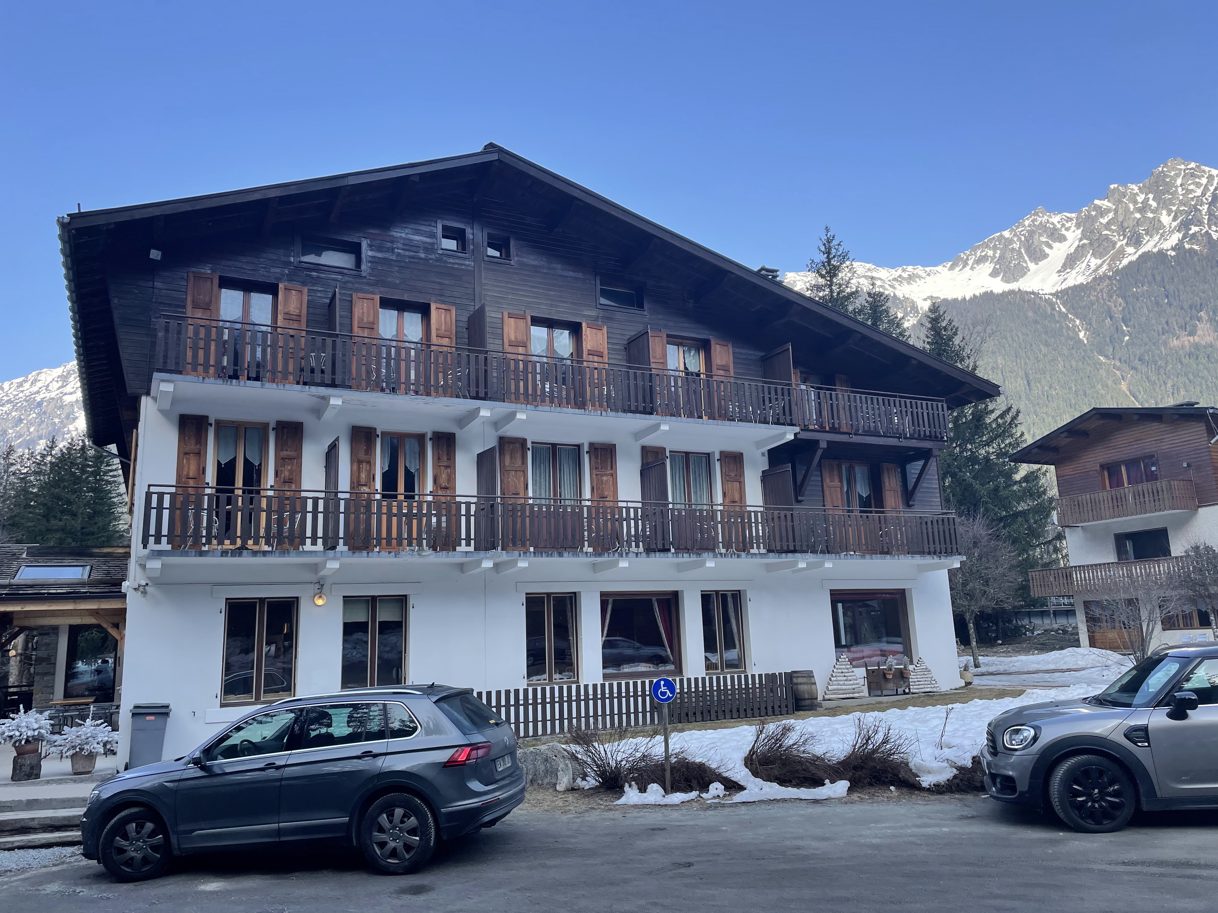 Chambres de taille convenable avec vue sur la montagne et la forêt. Le petit déjeuner est oubliable et un peu cher pour ce que c'est. Un parking est disponible et l'emplacement est à 5 mim en voiture du centre de Chamonix.