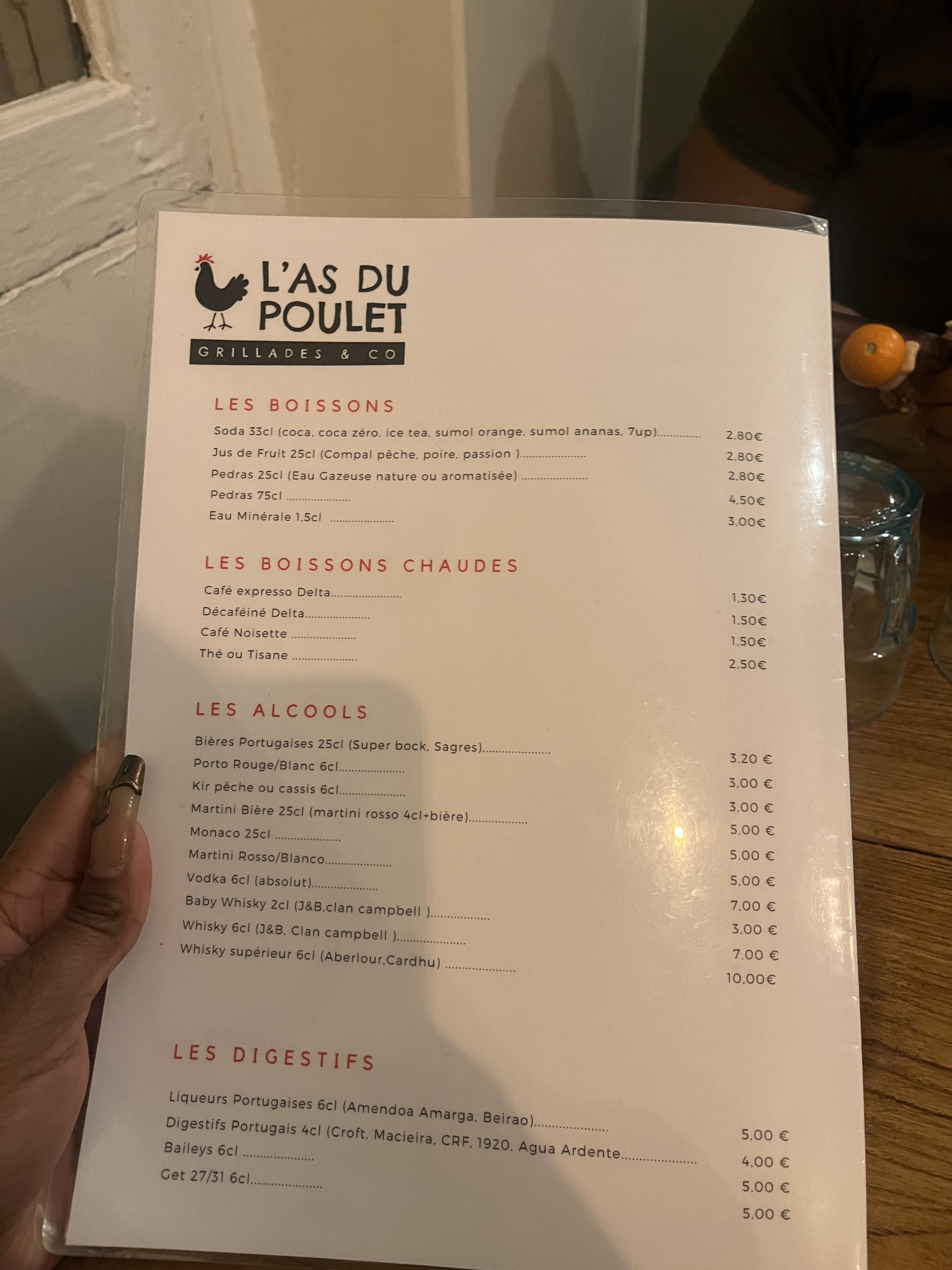 Ma compagne et moi avons récemment eu le privilège de savourer un délicieux repas au restaurant L'As du Poulet lors d'un déjeuner mémorable. Cette expérience gastronomique a été tout simplement fantastique, et je tiens à partager mon enthousiasme à ce sujet. Dès notre arrivée, nous avons été accueillis avec un sourire chaleureux par une équipe en salle composée de deux serveurs compétents et d'une serveuse charmante. Leur service attentionné a immédiatement créé une atmosphère conviviale et agréable. Nous avons opté pour le déjeuner et avons été agréablement surpris par la qualité exceptionnelle de la cuisine portugaise authentique proposée par le restaurant. Pour commencer, nous avons dégusté du haut de cuisse avec et une picanha de boeuf incroyablement tendre et savoureuse. Chaque bouchée était un régal pour les papilles. Le mélange d'entrée pour deux était une véritable explosion de saveurs. Les ingrédients étaient frais et magnifiquement préparés, et chaque plat était une véritable œuvre d'art culinaire. Le chef mérite certainement des éloges pour sa créativité et son talent culinaire. En dessert, nous avons été comblés par un gâteau de biscuits portugais à la texture moelleuse et aux saveurs riches. La brioche perdue avec du caramel au beurre salé était une véritable gourmandise. Ces douceurs sucrées ont parfaitement clôturé notre repas. L'ambiance du restaurant était charmante, avec une décoration portugaise authentique qui nous a transportés dans un coin de Portugal. Nous tenons à remercier chaleureusement toute l'équipe en salle pour leur service exceptionnel et leur attention aux détails. Ils ont rendu notre déjeuner mémorable. Nous recommandons vivement le restaurant L'As du Poulet à tous ceux qui recherchent une cuisine portugaise de qualité et une expérience culinaire inoubliable. Nous avons hâte de revenir pour explorer davantage le menu et profiter de l'hospitalité exceptionnelle de cet établissement. Merci encore pour cette expérience inoubliable. Cordialement, MH et EH