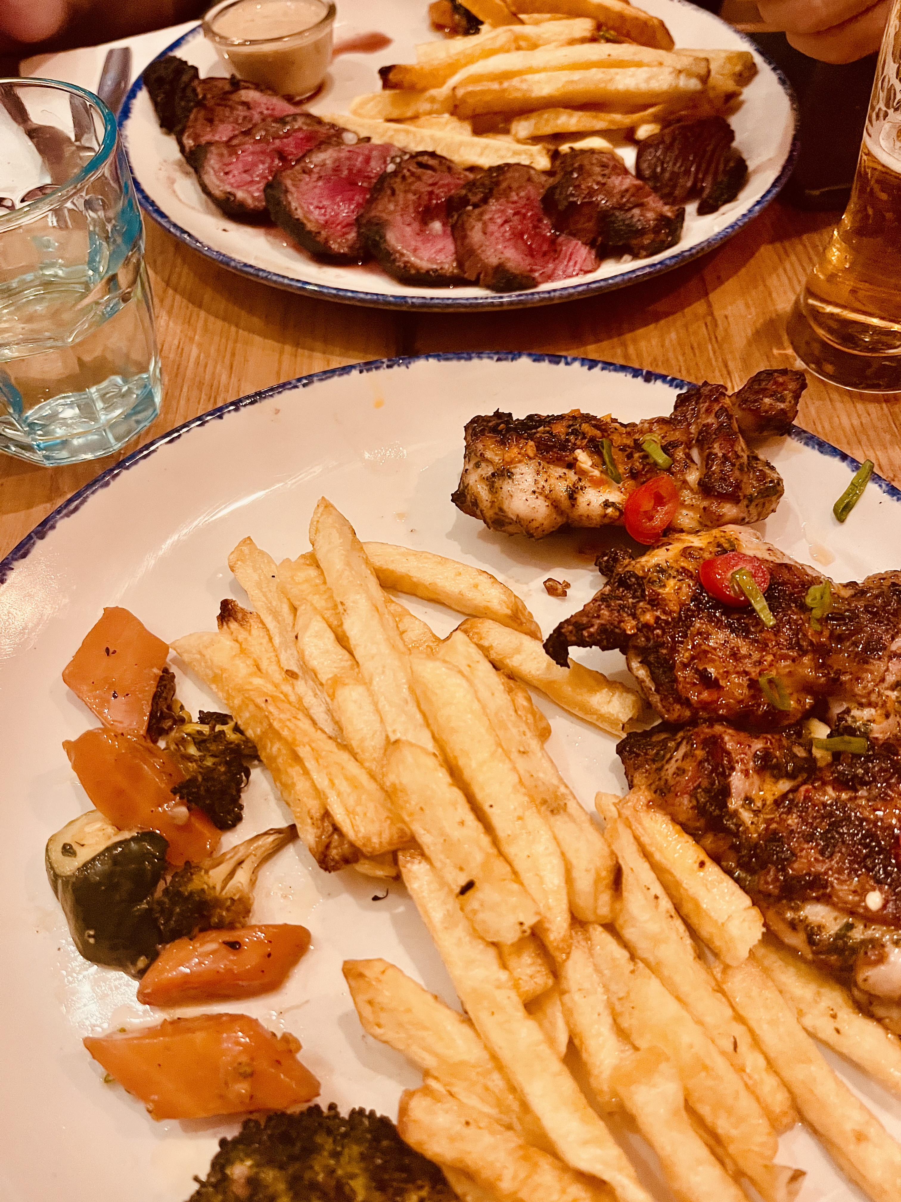 Un bon restaurant pour mes VIANDARDS ! Il y a du goût, une bonne qualité prix = F.O.N.C.E.Z Par contre prenez vos viandes sans piment parce qu’il arrache très fort ! Les pomme de terres grenailles sont super bonnes ! Quelle a été ma surprise au dessert ???? LA BRIOCHE PERDUE ?? 😭😭 Mais quel délice, bien moelleuse, elle se marie bien avec le caramel et la boule de glace, elle vaut totalement son prix. Bref, je recommande !