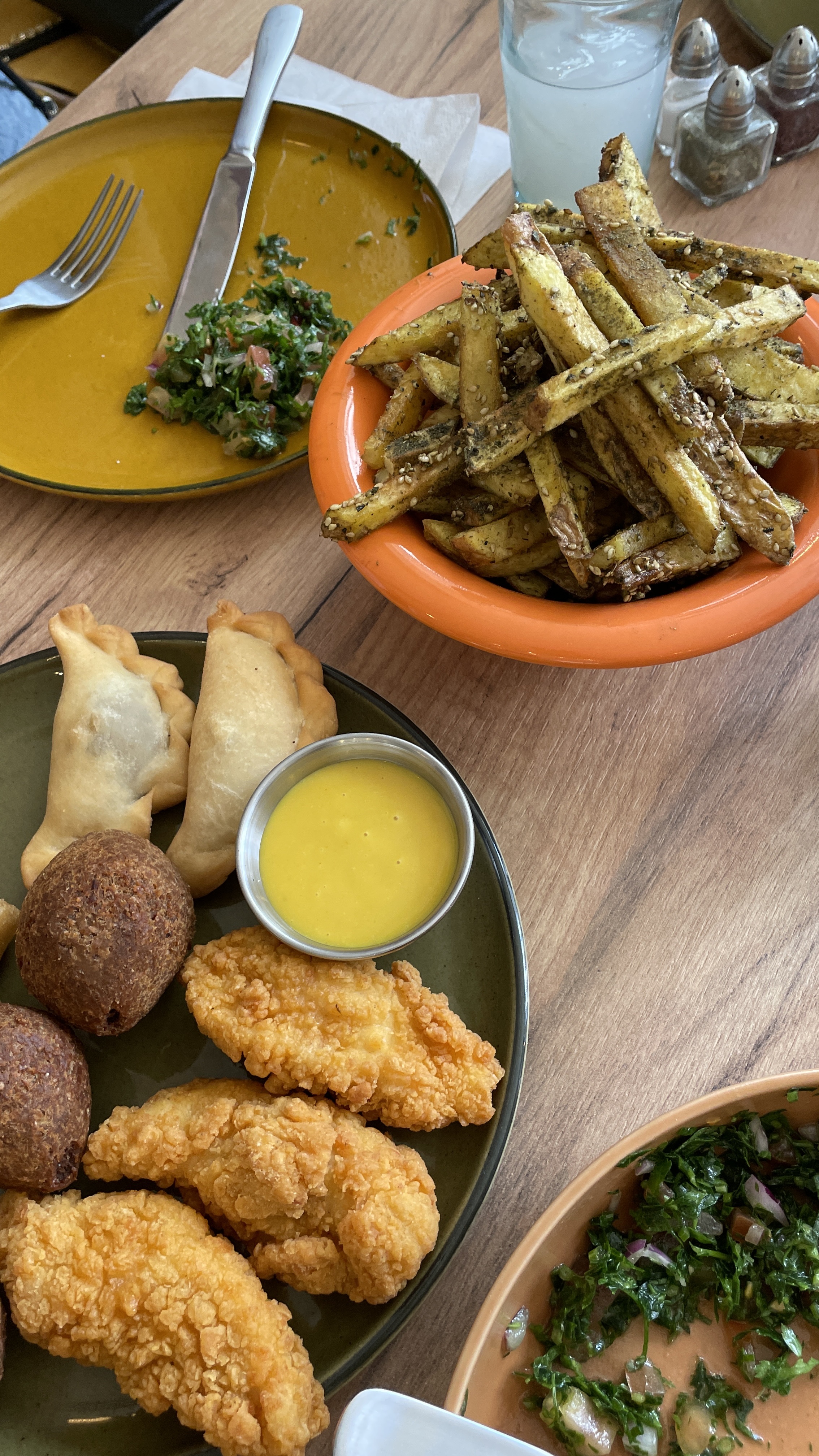 Excellente assiette de houmous ! Les pommes frites au zaa'tar étaient incroyables. Le personnel était très sympathique et arrangeant. Sera de retour