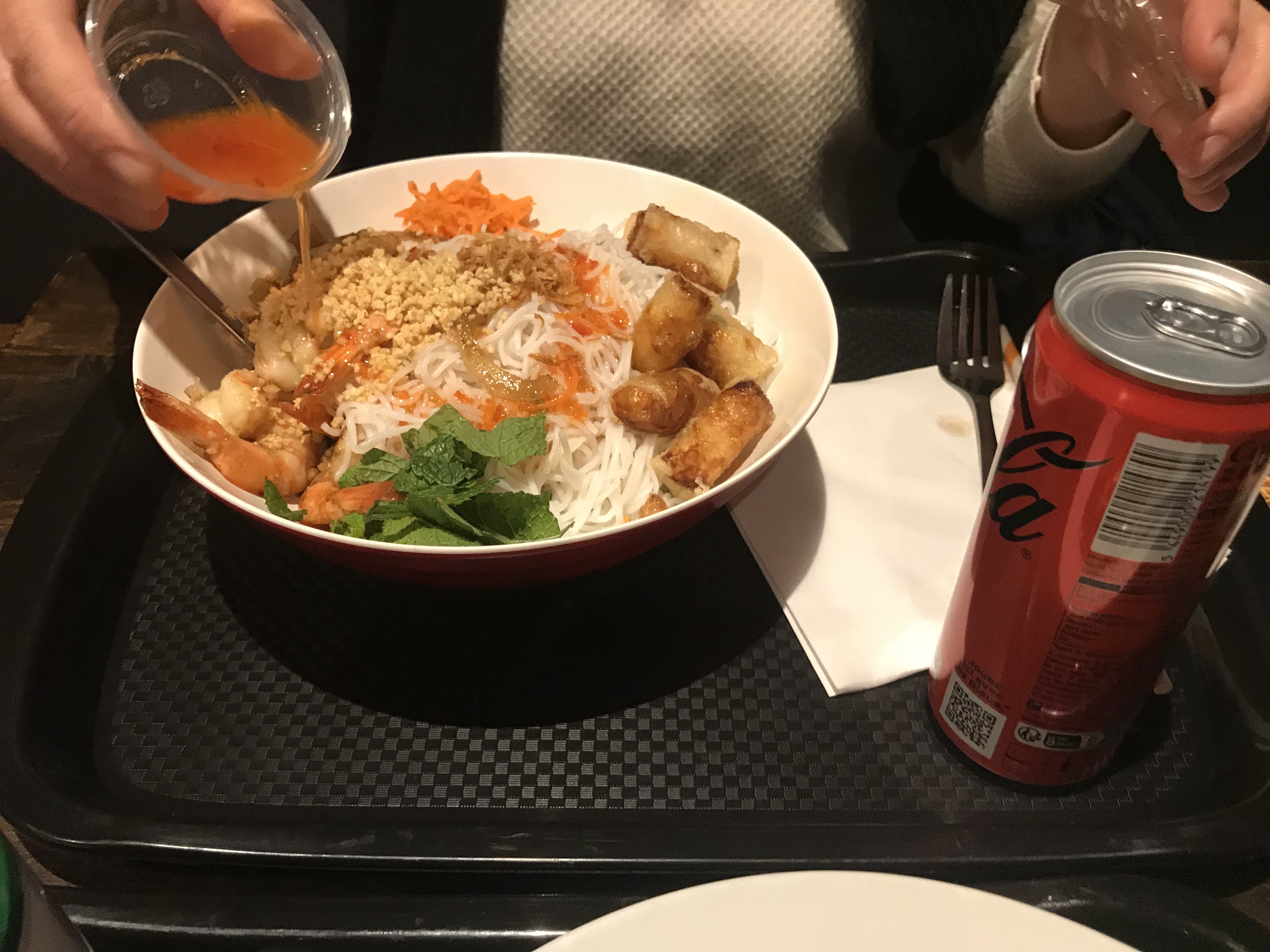J’ai adoré ! Les nems poulets + riz contonais + thé mangue = incroyablement bon <3 Et le personnel est très sympa