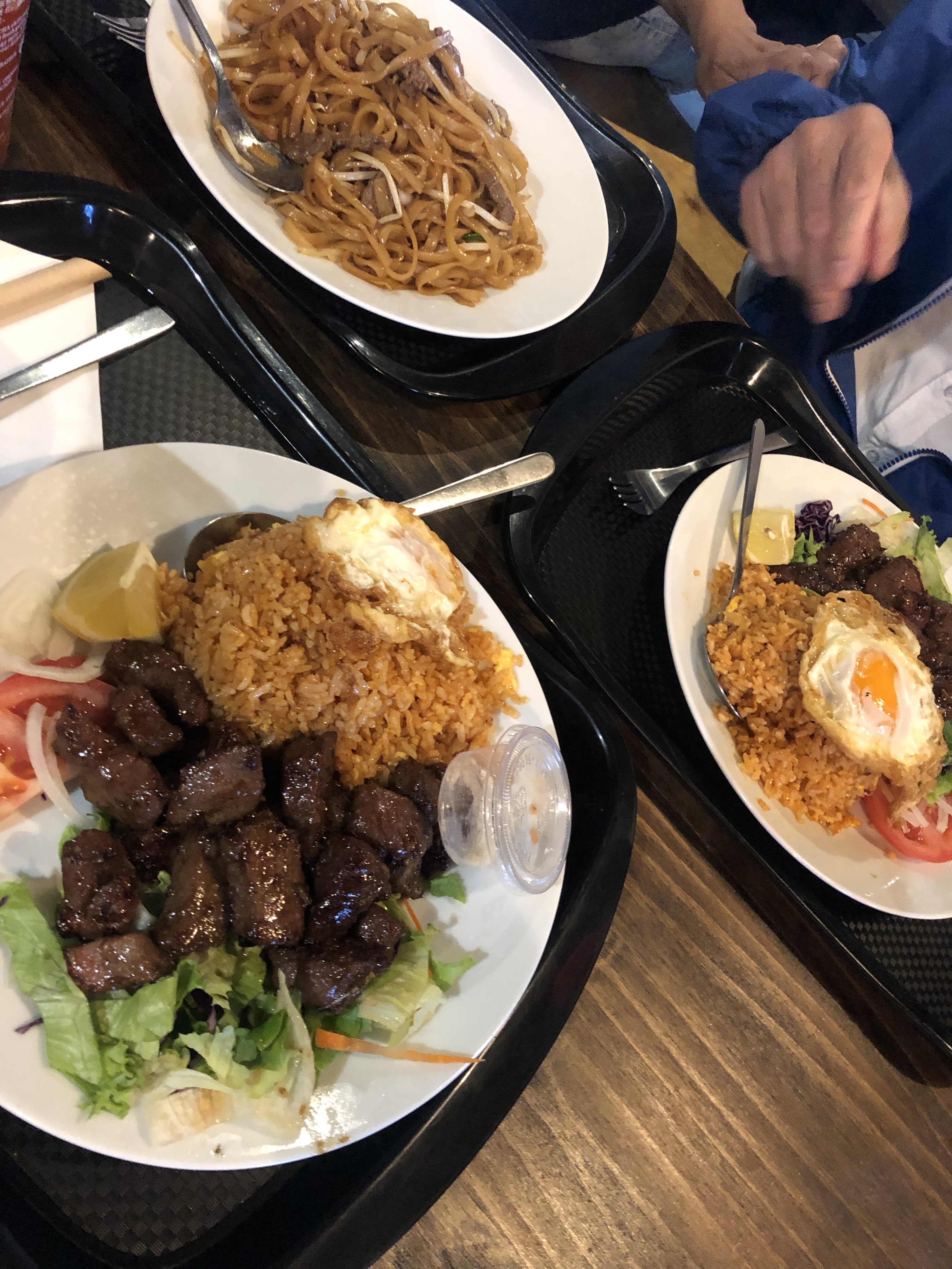 C'était bien, le riz du Loc lac est un peu moins savoureux qu'à ses début mais ce n'est pas dérangeant car le plat en lui même étant déjà suffisamment salé à mon goût. Les tomates ne sont pas goûteuses... Le boeuf est bon et les wings également, bien croustillants. Un peu déçue par le plat de nouilles aux crevettes, les crevettes avaient un arrière goût pas très agréable... Je doute de leur fraîcheur... Peut-être que je n'ai pas eu de chance ce jour là ? Les bubbles tea ne sont pas terribles, les perles de tapiocas sont trop dures. Attention pour le stationnement car zone étudiantes donc très peu de place en semaine. Ils acceptent les cartes tickets restaurants / chèques vacances ANCV / CB et espèces. Je recommande.