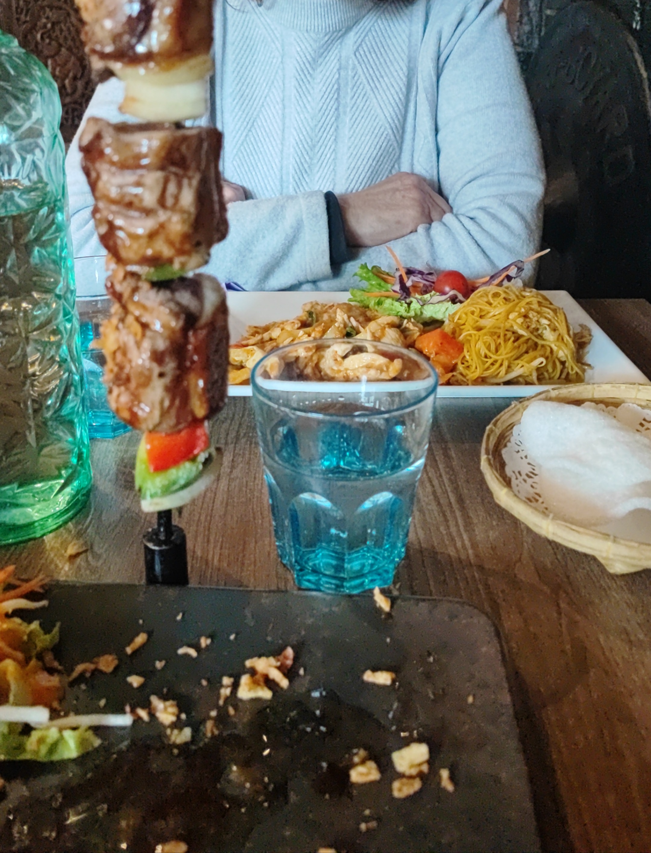 Belle déco, 2 en service pour un samedi soir mais le serveur m’a dit qu’il en manquait un, belles garnitures thaï, fraîches, en revanche la viande est bas de gamme, heureusement il y a plein de sauce pour cacher le goût de celle-ci. La boisson est chère. Pas très bon rapport qualité prix mais y’a la déco !! Le serveur et le patron étaient sympa.