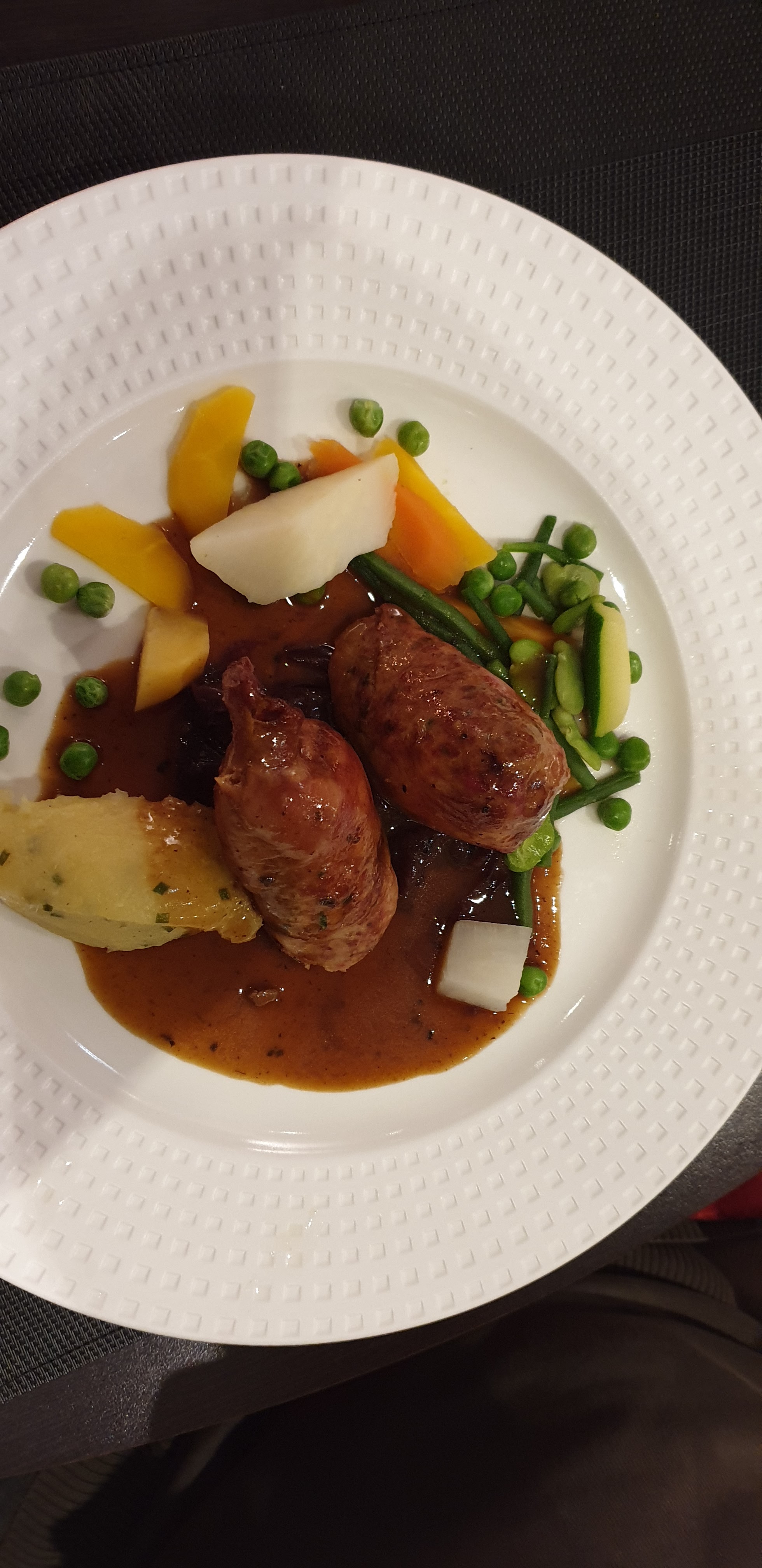 Plats bien présentés, dommage que l'entrée oeuf parfait était trop froid, la ballotine était bien chaude mais les légumes froids. On s'attendait à beaucoup mieux