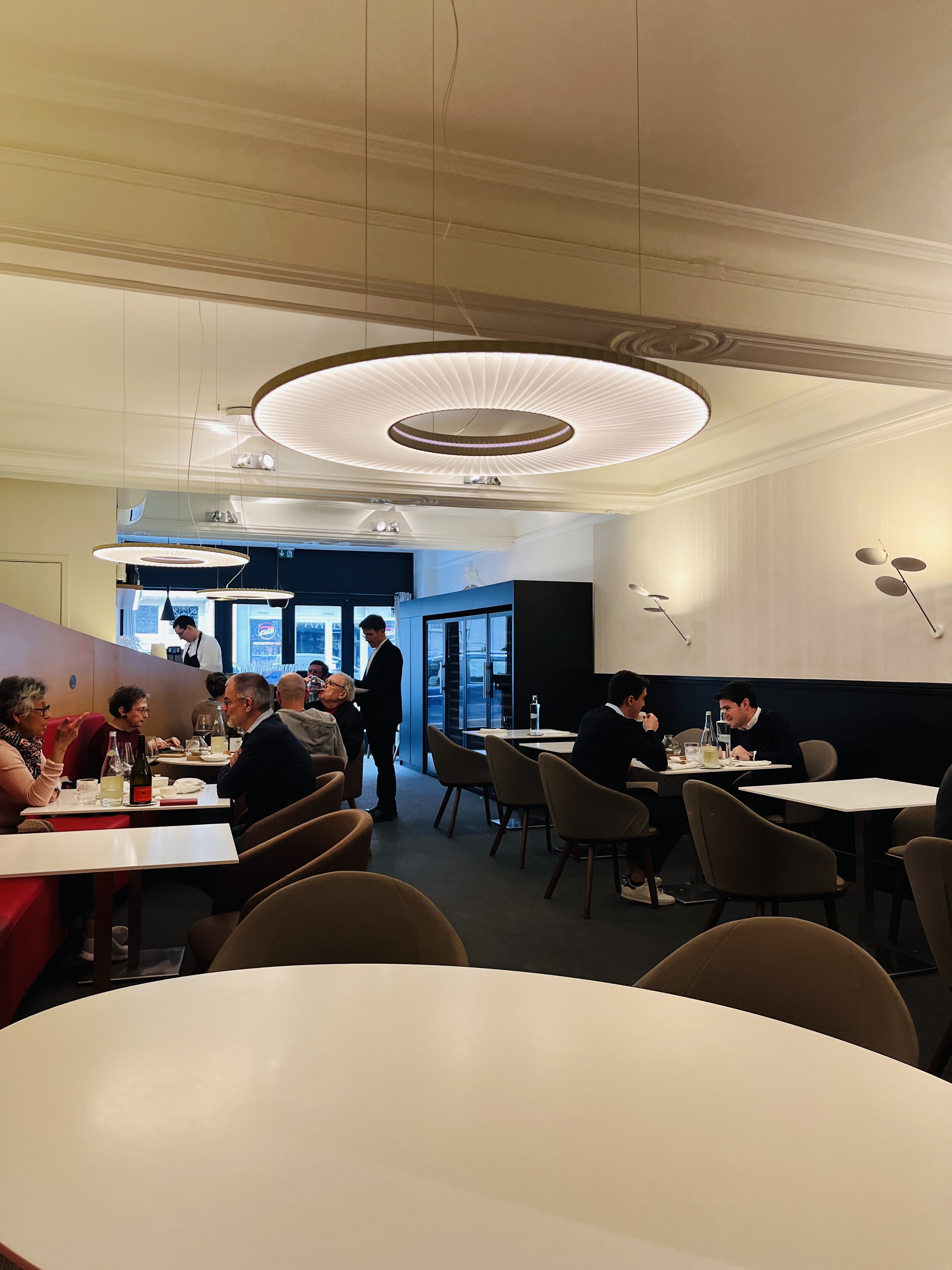 Nous étions 6 pour un repas d’anniversaire et y avons passé un grand moment. La cuisine a fait l’unanimité. La carte des vins est très fournie, de qualité, a des prix raisonnables pour les domaines proposés. Le service etait parfait, très professionnel tout en étant détendu. Le rythme bien cadencé. Un sans fautes. Le point qui me surprend et peut-être dessert le restaurant restera la décoration et l’ameublement de la salle, point que je ne remarque jamais mais qui ici a mon goût dénote et ne valorise pas l’excellence du lieu en cuisine et au service.