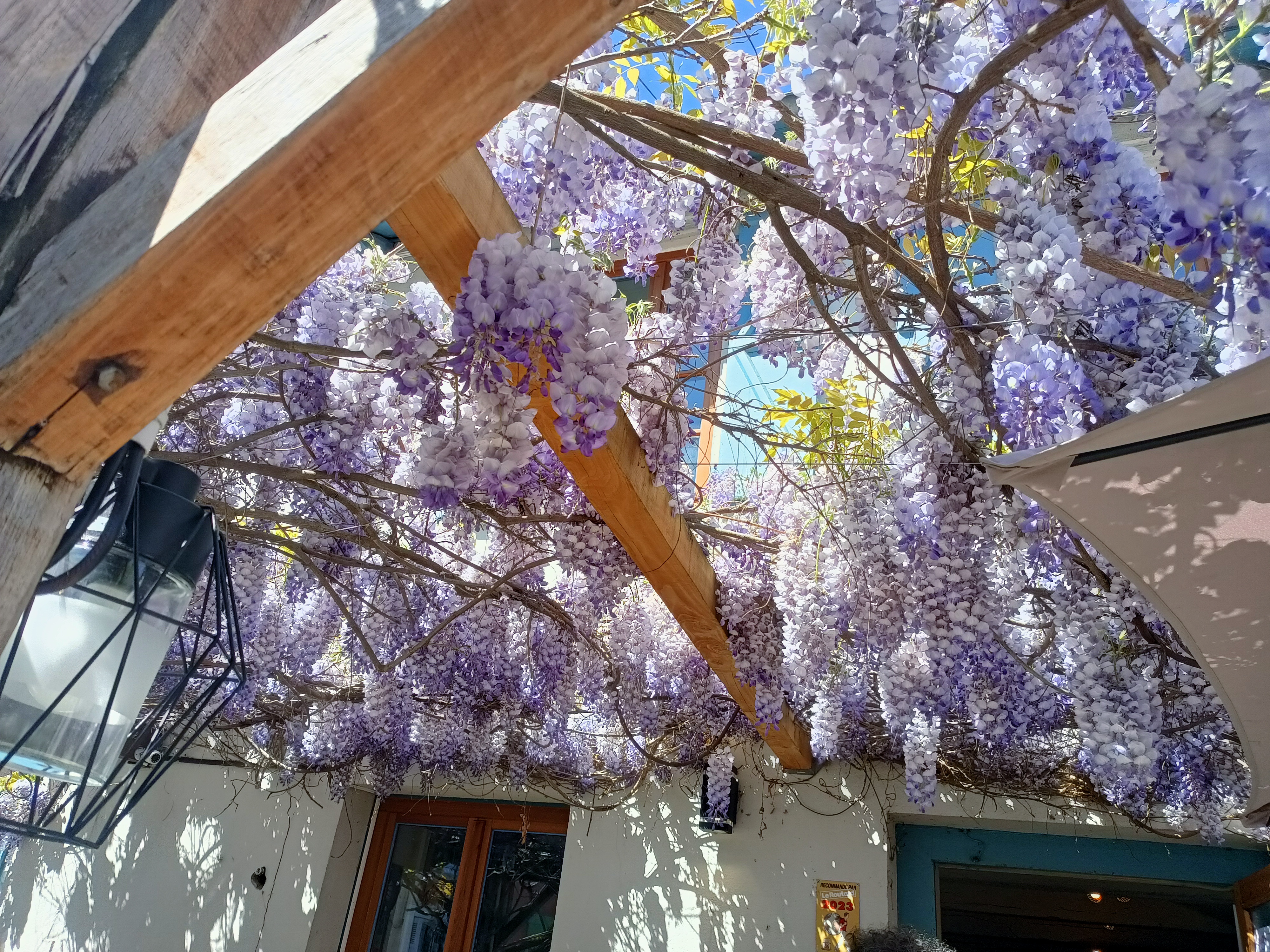 Belle découverte, installés sous la glycine pour ce mois d'avril. Nous avons très bien mangé. Repas copieux et qualitatif 😋