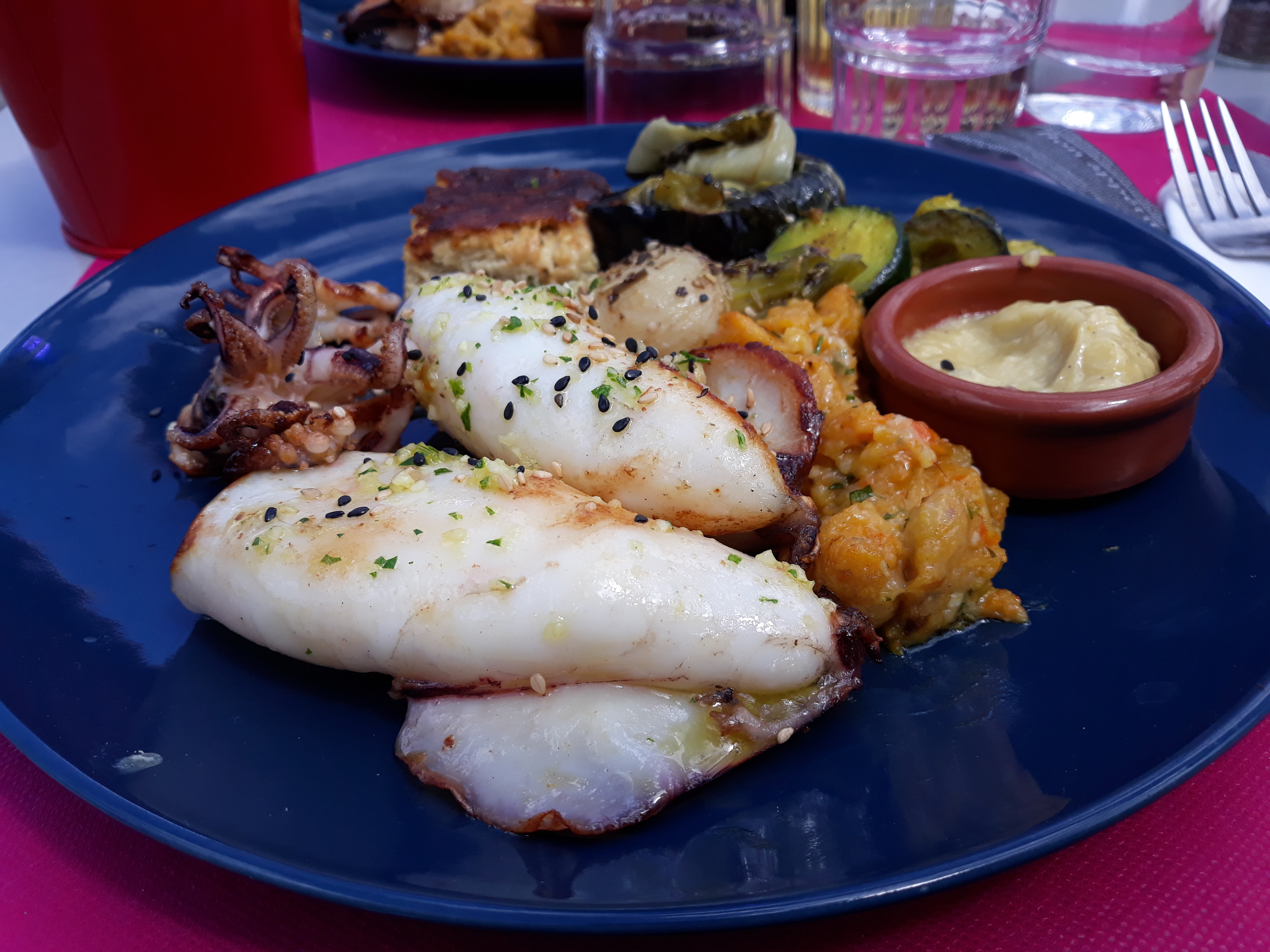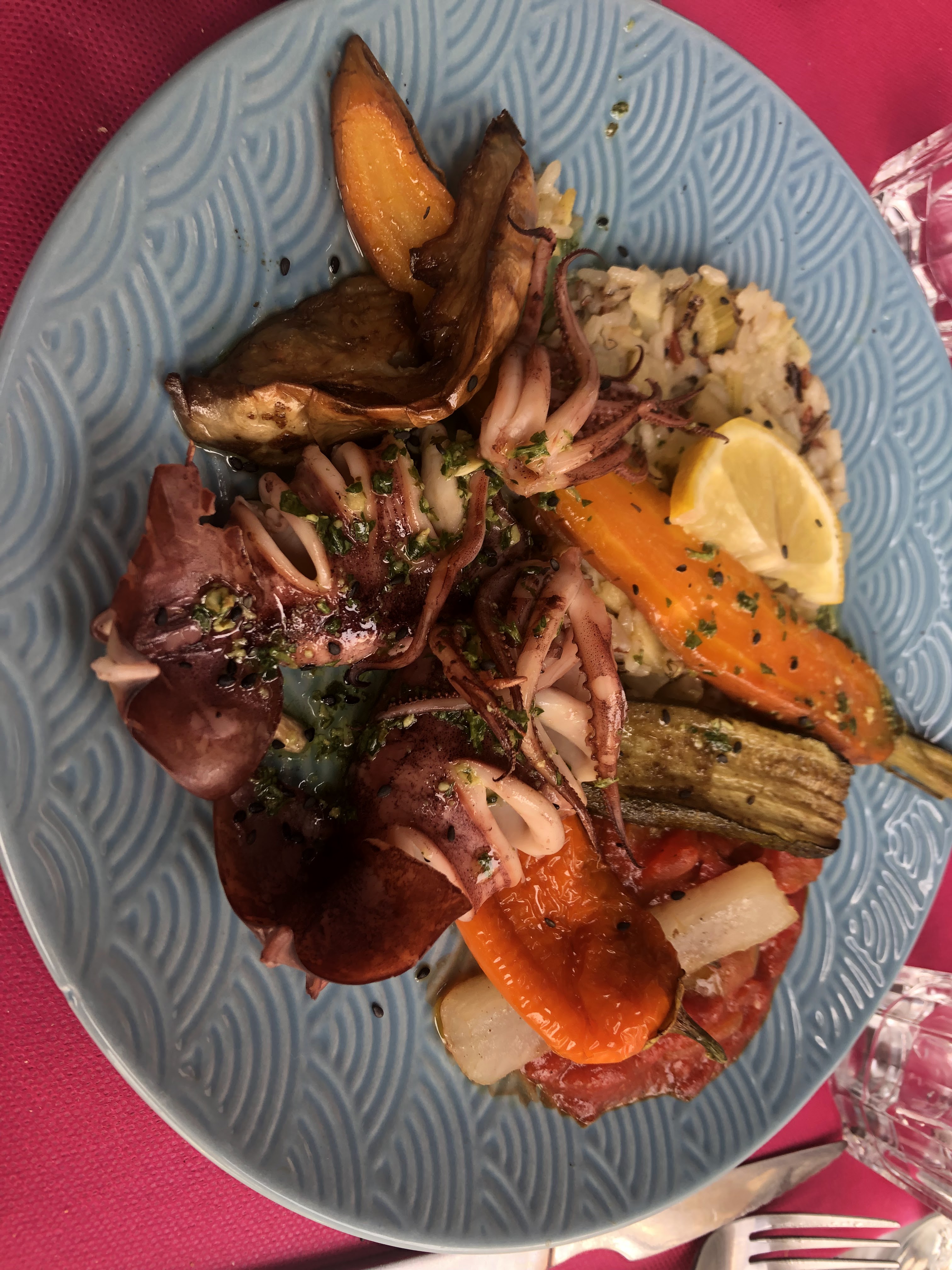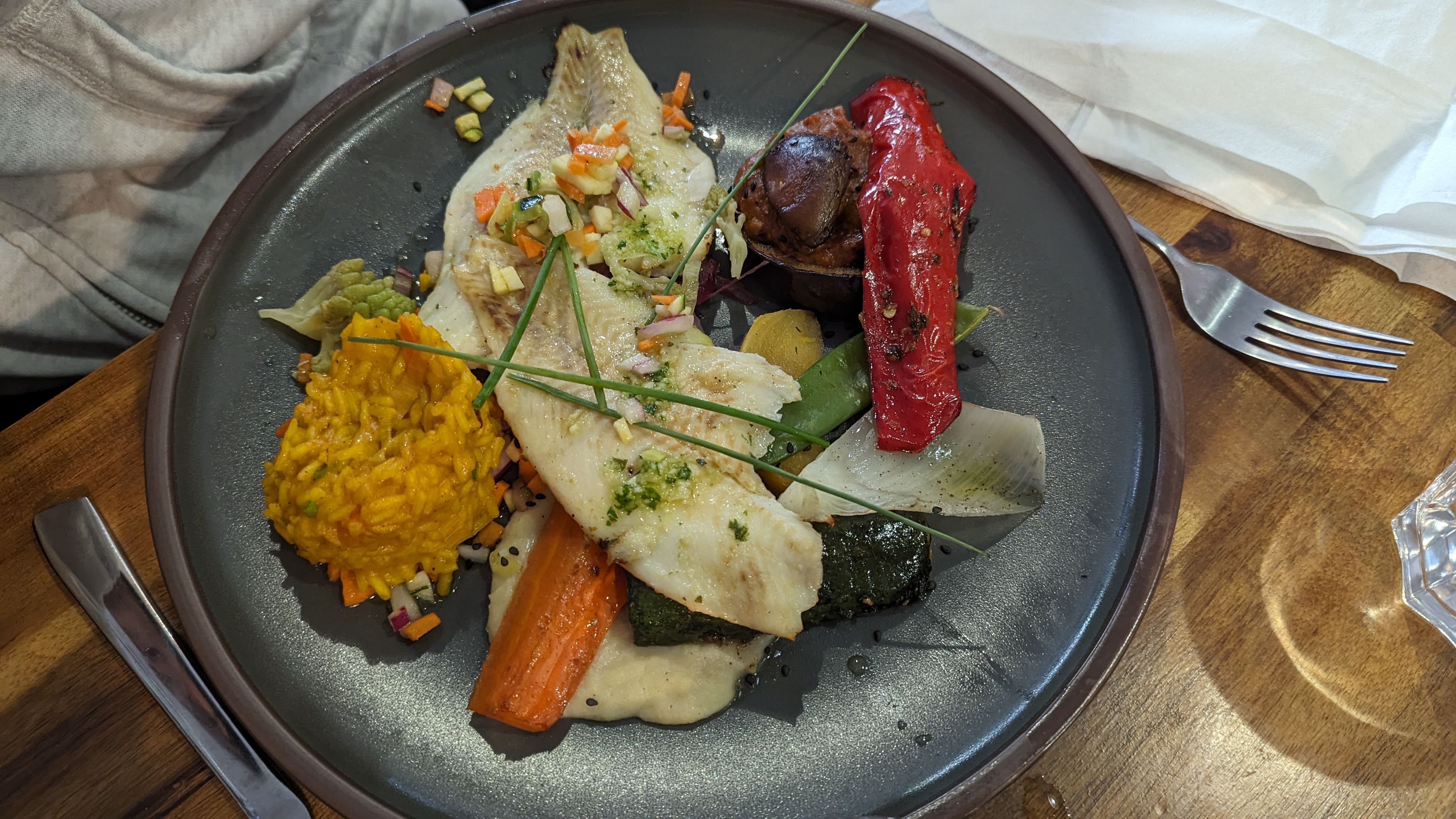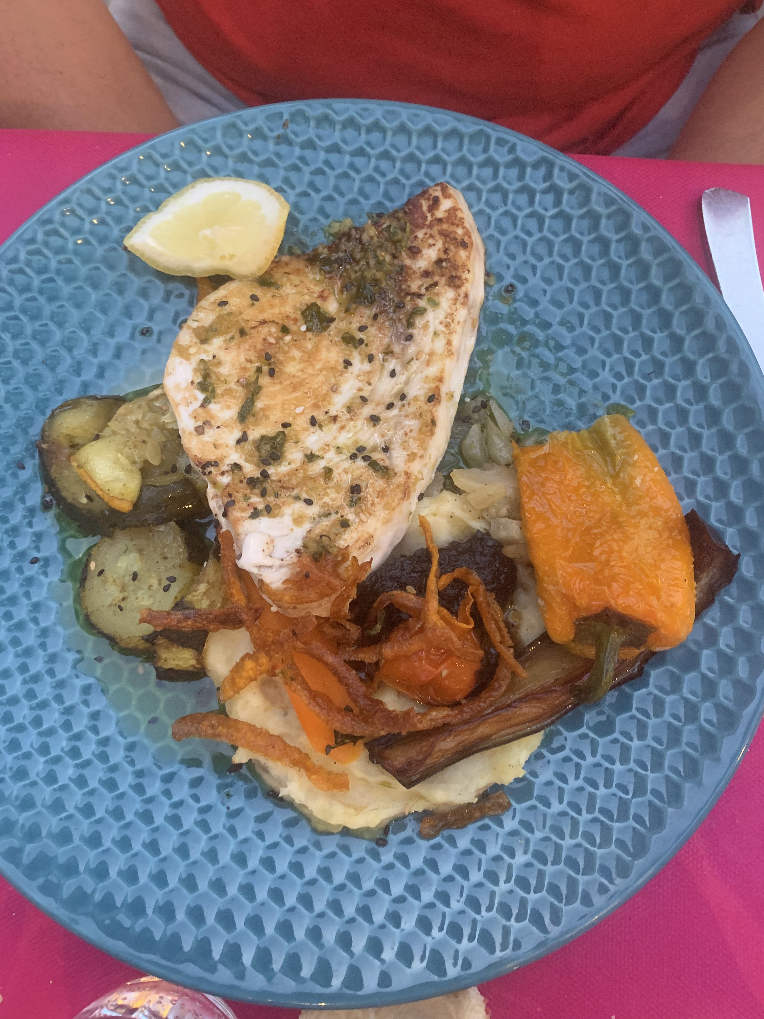 Délicieux! Si vous souhaitez savourer du poisson ou du taureau c'est par ici ! Servi avec des petits légumes qui ont vraiment du goût. Gâteaux simples mais efficaces ! Dommage néanmoins que certains légumes ne soient pas de saison (courgettes en hiver....)