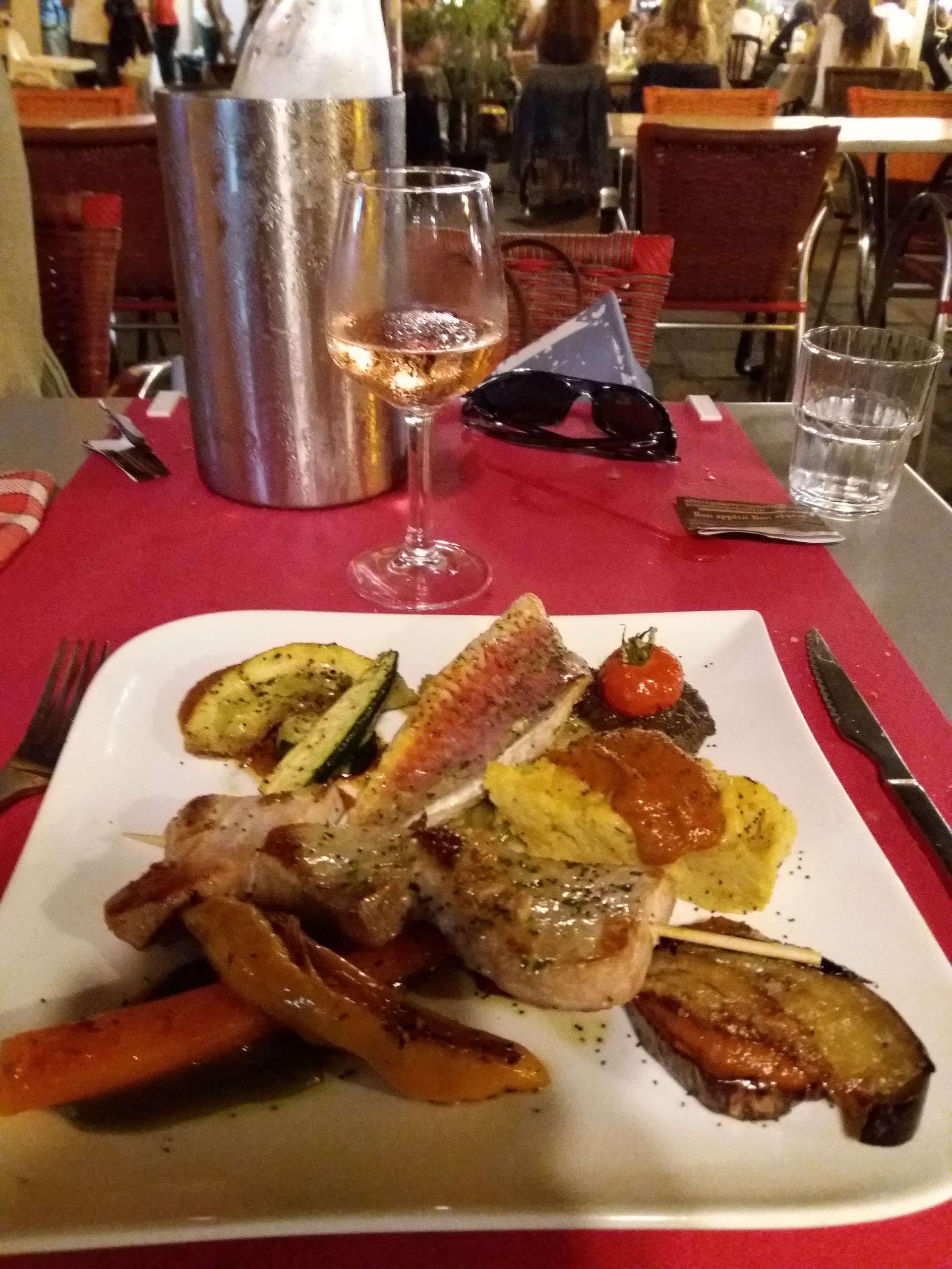 Très bon viognier a l assiette amoureuse au Grau du Roi. Très agréable de prendre un petit verre en terrasse devant le marché. Pour manger n oubliez pas de réserver, c est bon.