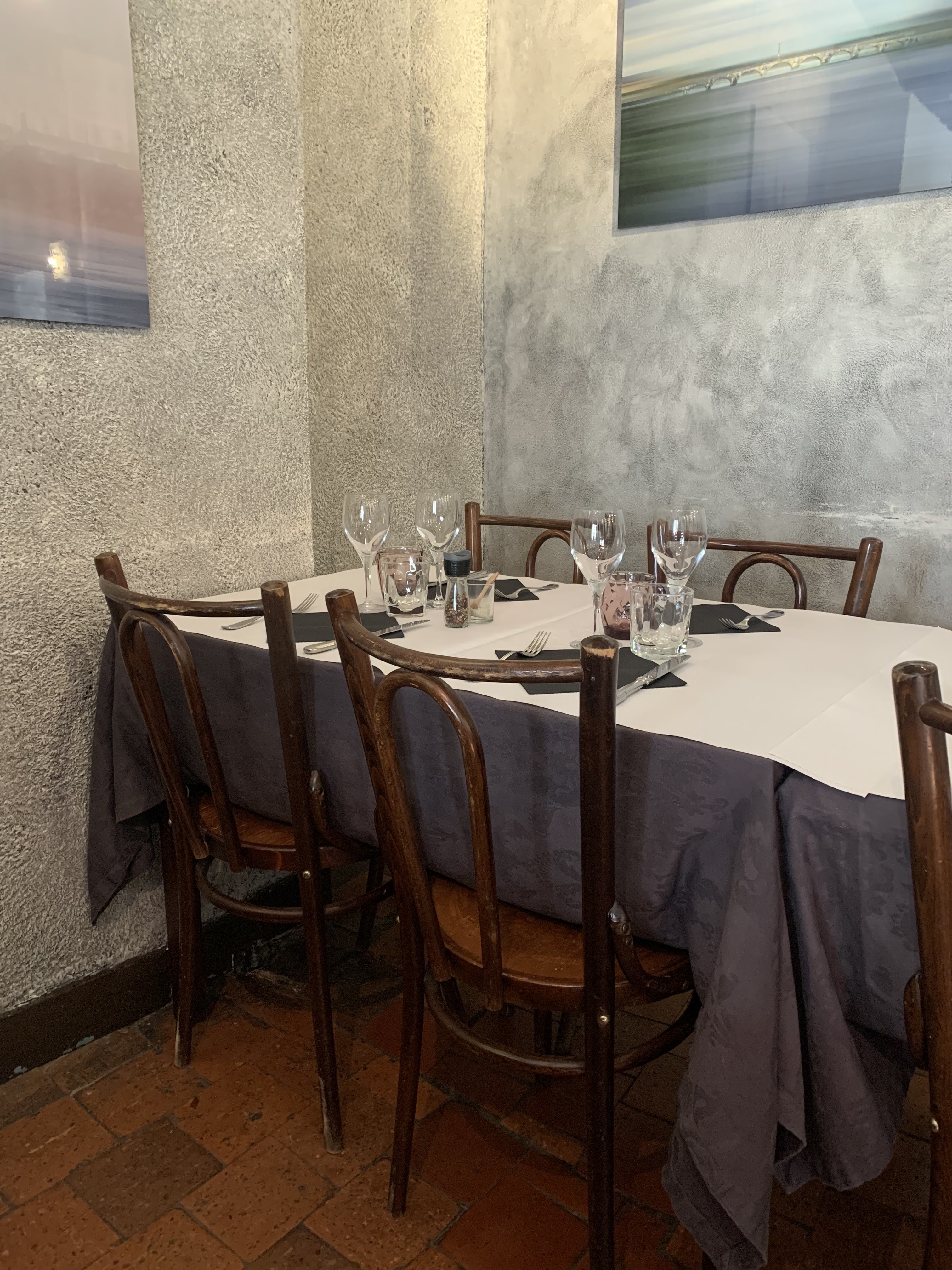 Après avoir essayé de réserver dans de nombreux autres endroits, nous avons trouvé ce restaurant, le propriétaire était très disponible et la nourriture et le vin étaient très bons… peut-être un peu cher.