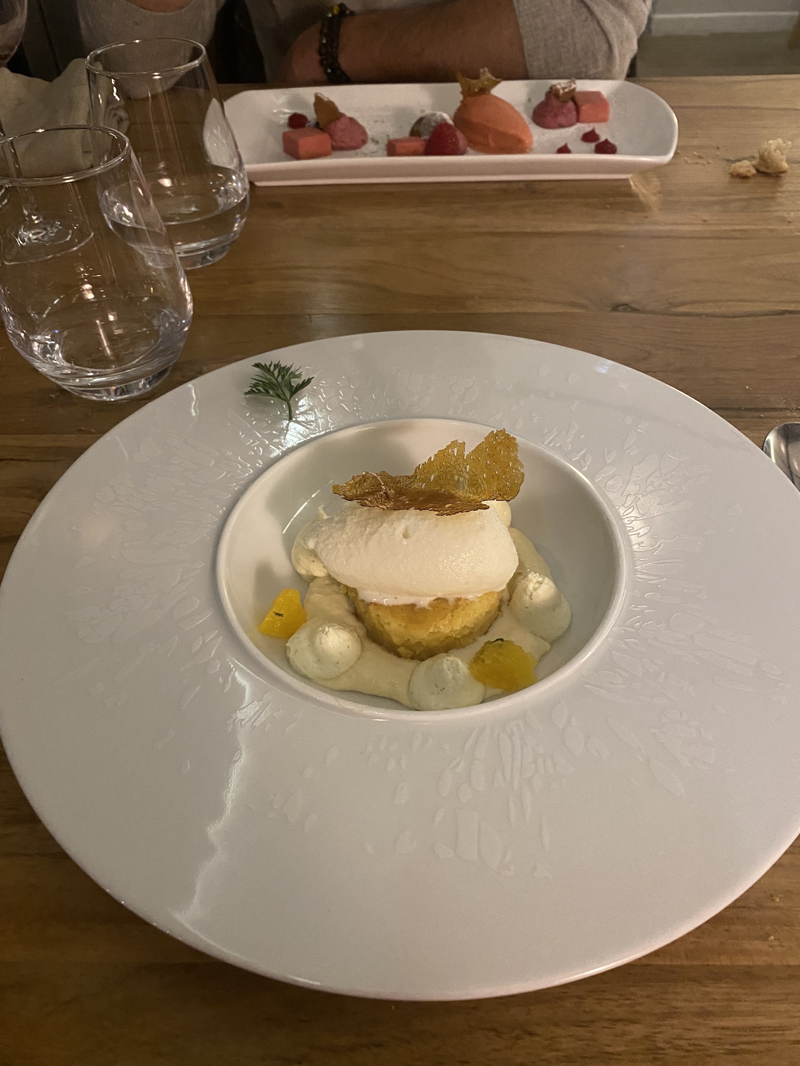 Très bon restaurant, nous avons mangé dans la véranda ouverte sur le jardin c’était très agréable. Mention spéciale au dessert à l’abricot, une véritable tuerie. Bon courage pour la suite de la saison notamment en service, ce n’est pas l’année la plus facile.