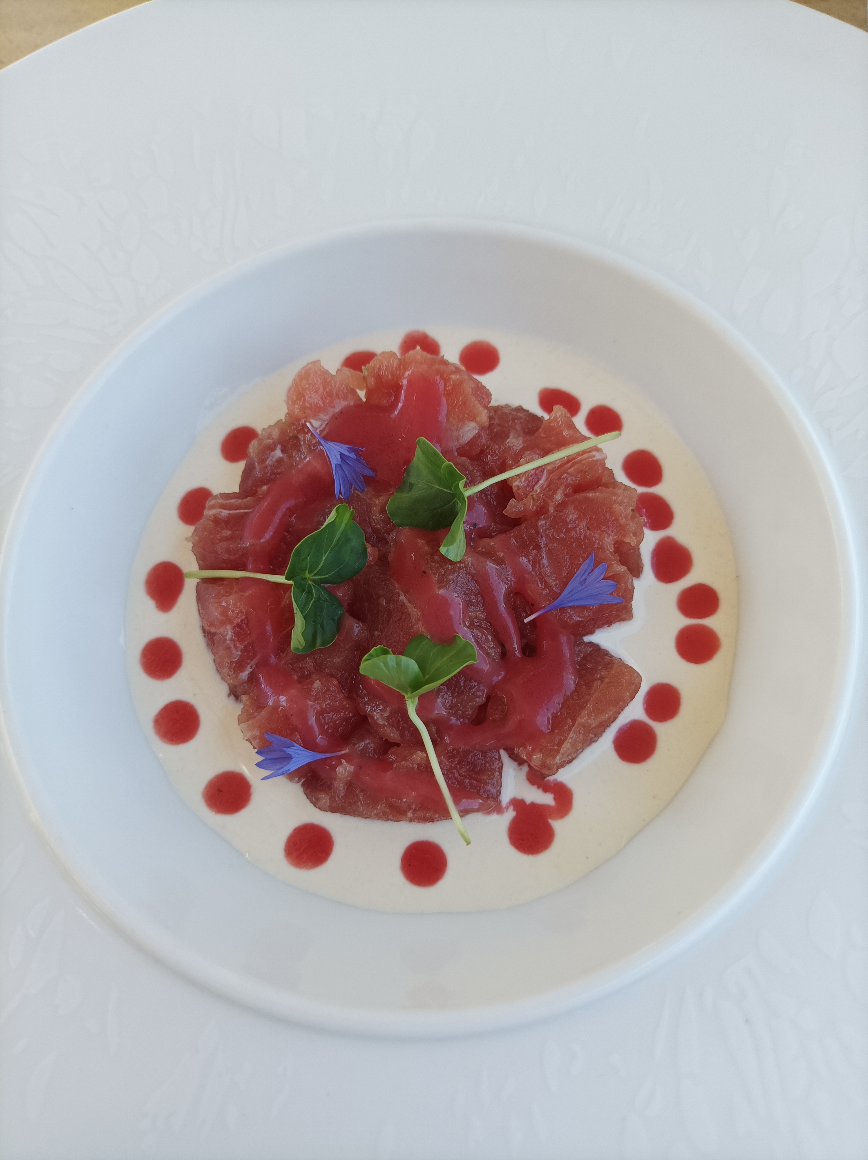 Très bel endroit raffiné et moderne. Un amuse-gueule délicieux et rafraîchissant qui annonce un bon repas délicat et délicieux. Des assiettes aussi belles que bonnes. Une agréable découverte aguichile de thon rouge. Seul bémol les serviettes en papier mériteraient d être en tissu vu le standing. A noter les chiens ne sont pas admis même en terrasse mais ils ont fait une exception et tout s est bien passé.