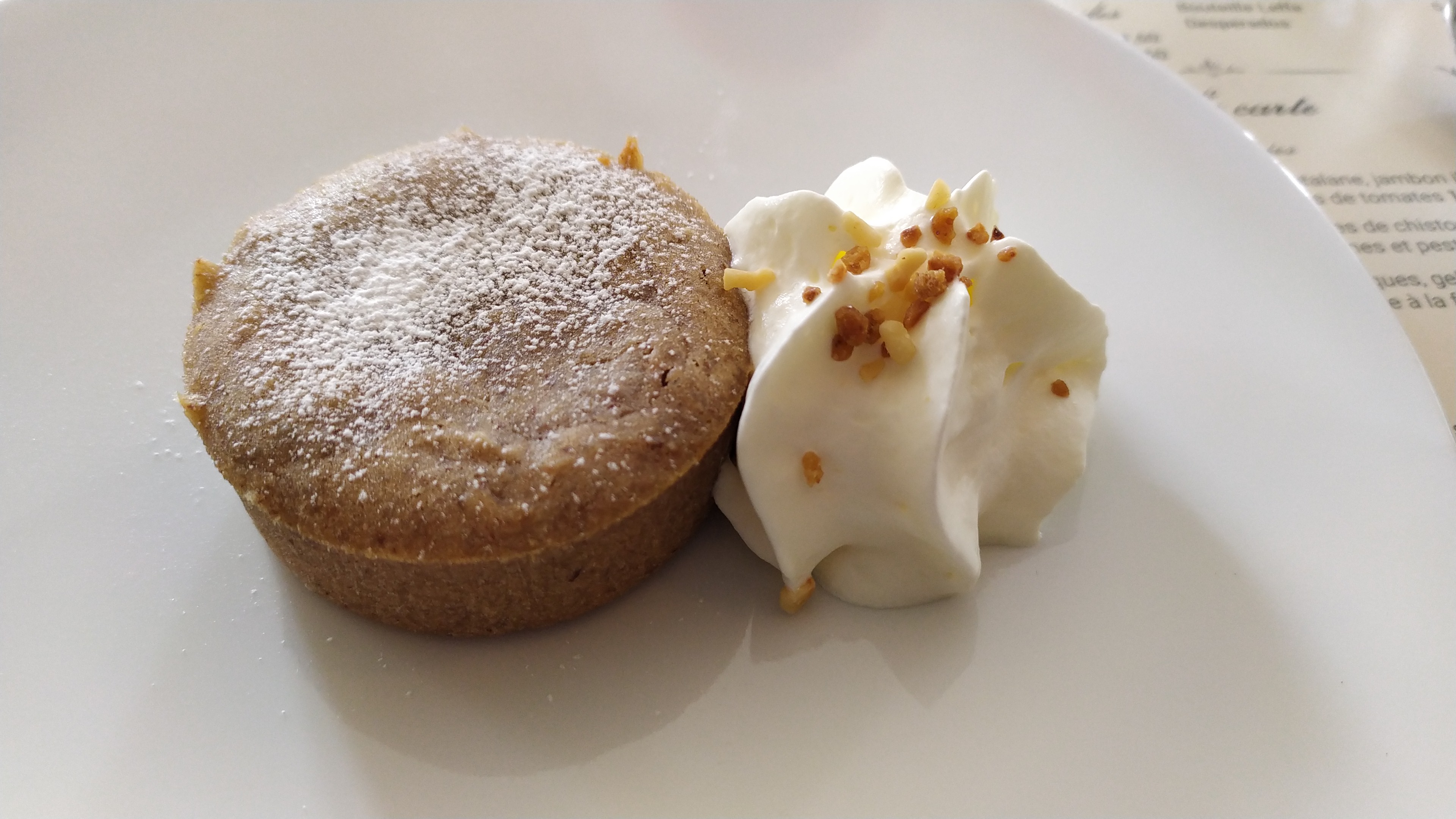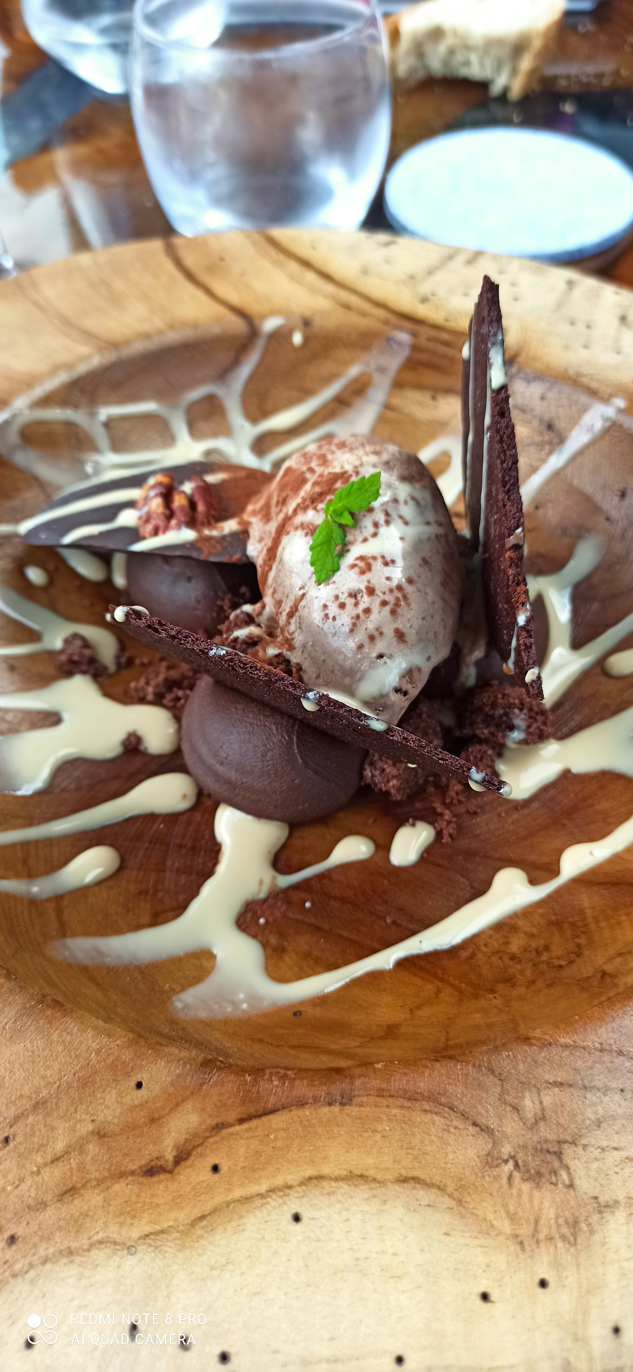 Délicieux de l'entrée au dessert. Un service au top avec des jeunes agréables et très attentionnés. Je recommande vivement. J'ai oublié de prendre des photos, juste le dessert mais tout était très appétissant. Un restaurant Hapy-saveurs donc garantie de produits locaux.👏