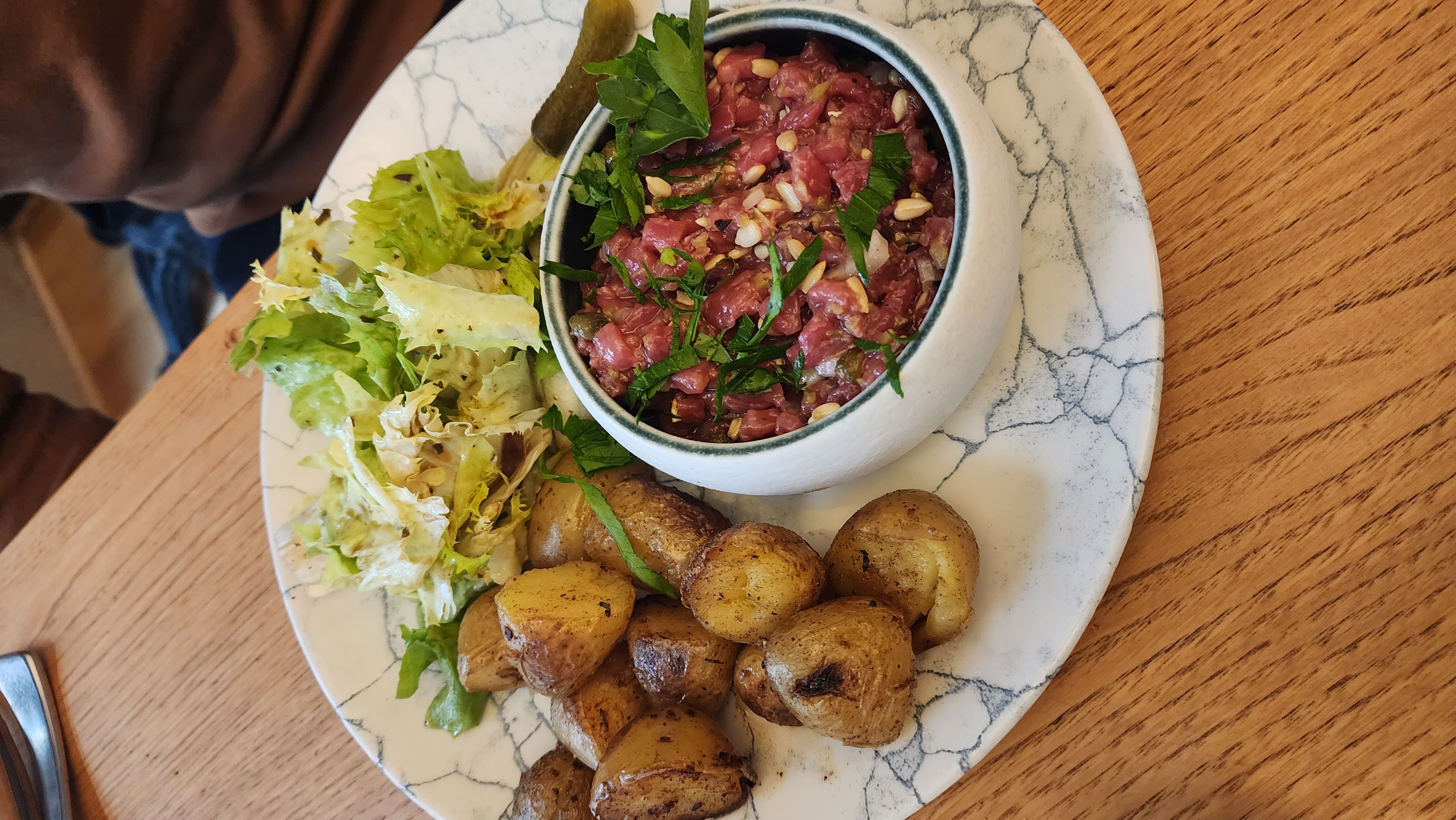 Service rapide et sympathique ! Le tartare de bœuf est vraiment bon accompagné d'un bon vin au top 😊