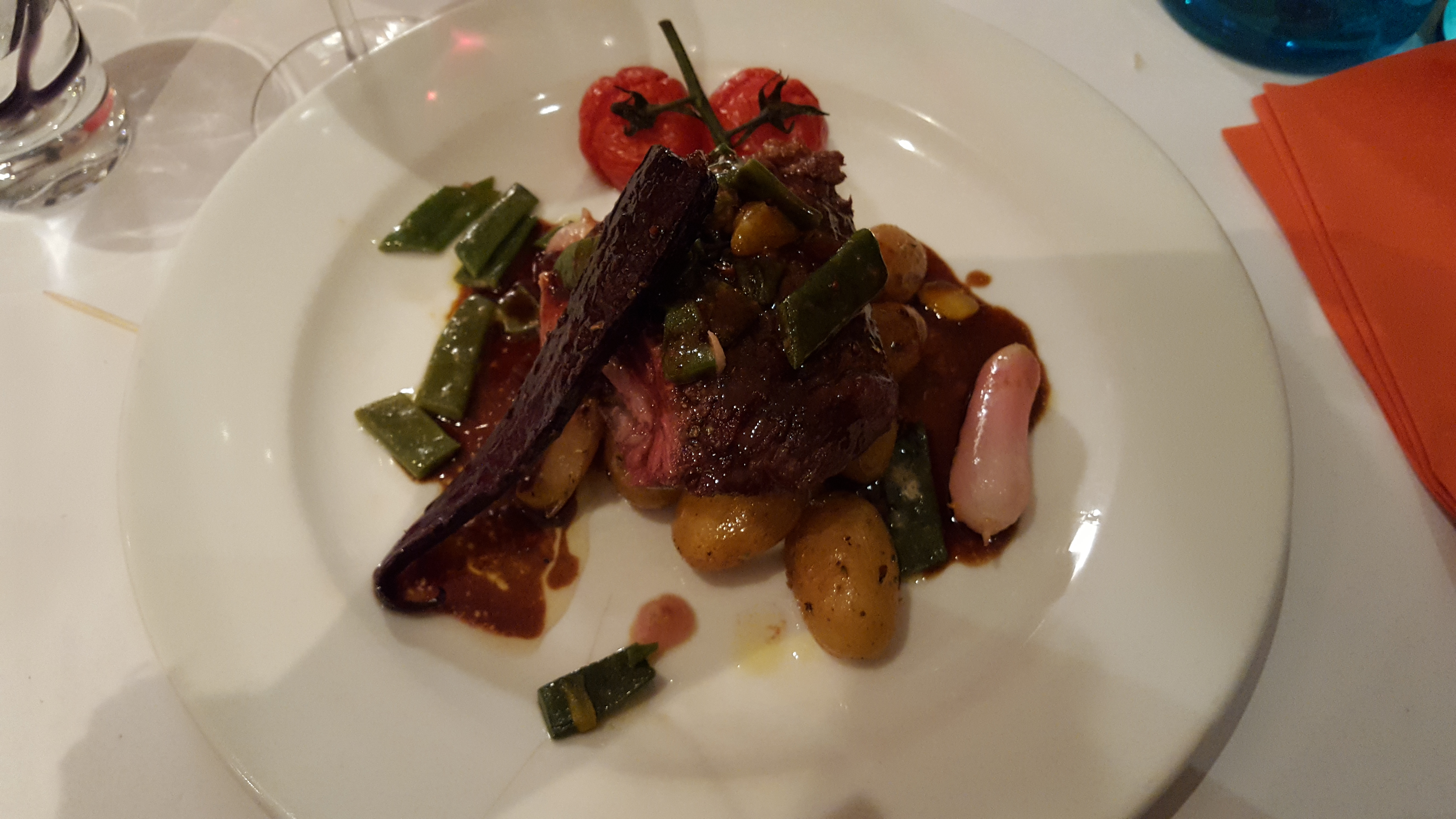 Je n'ai pas réussi à mettre plus malgré la bonne qualité de la cuisine et la déco sympa. Alors pourquoi ? ce sentiment d'être pris pour un pigeon est assez désagréable et gâche le plaisir. Des portions vraiment ridicules : 3 demi pommes de terre grenaille (ca été vite pour les compter) avec une trace de purée pour accompagner un plat à + de 26€ c'est vraiment ridicule. Côté dessert, même esprit, pas généreux, radin, c'est 1 profiterolle avec sa petite boule de glace. Les vins les moins chers ne sont pas disponibles, un service un peu poussif, surtout pour avoir une carafe d'eau, et des prix qui tabassent sévères, surtout le we a priori... Bref, c'est dommage car vraiment bonne cuisine et déco sympa. Ayez la main un peu plus généreuse et nous reviendrons avec plaisir car je ne pense pas que les quelques patates supplémentaires vous mettront en péril.