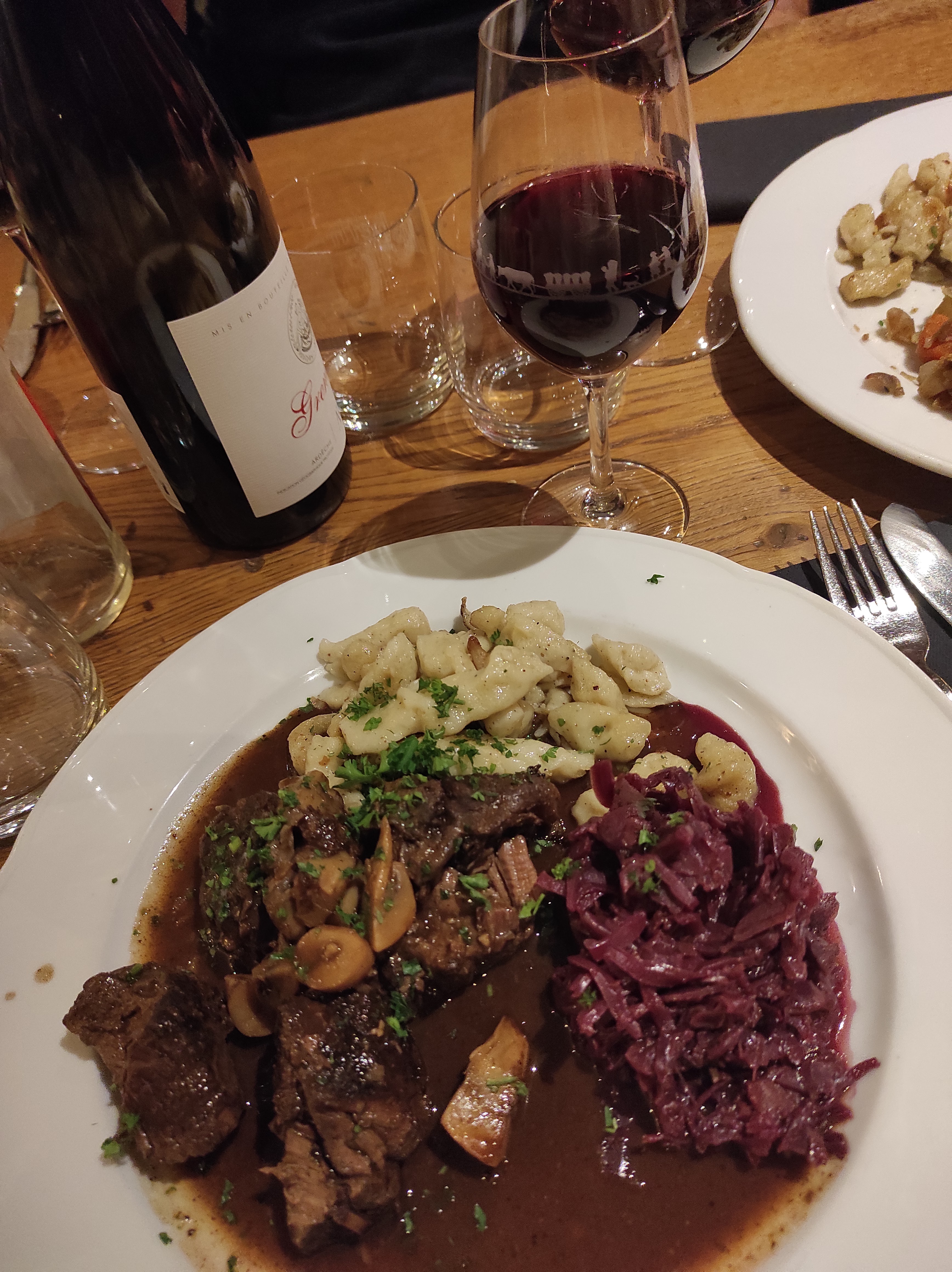 Un bon dîner, un bon vin .... et surprise !!! on peut acheter le vin que l'on vient de boire. Une belle petite adresse à Schiltigheim. Je recommande