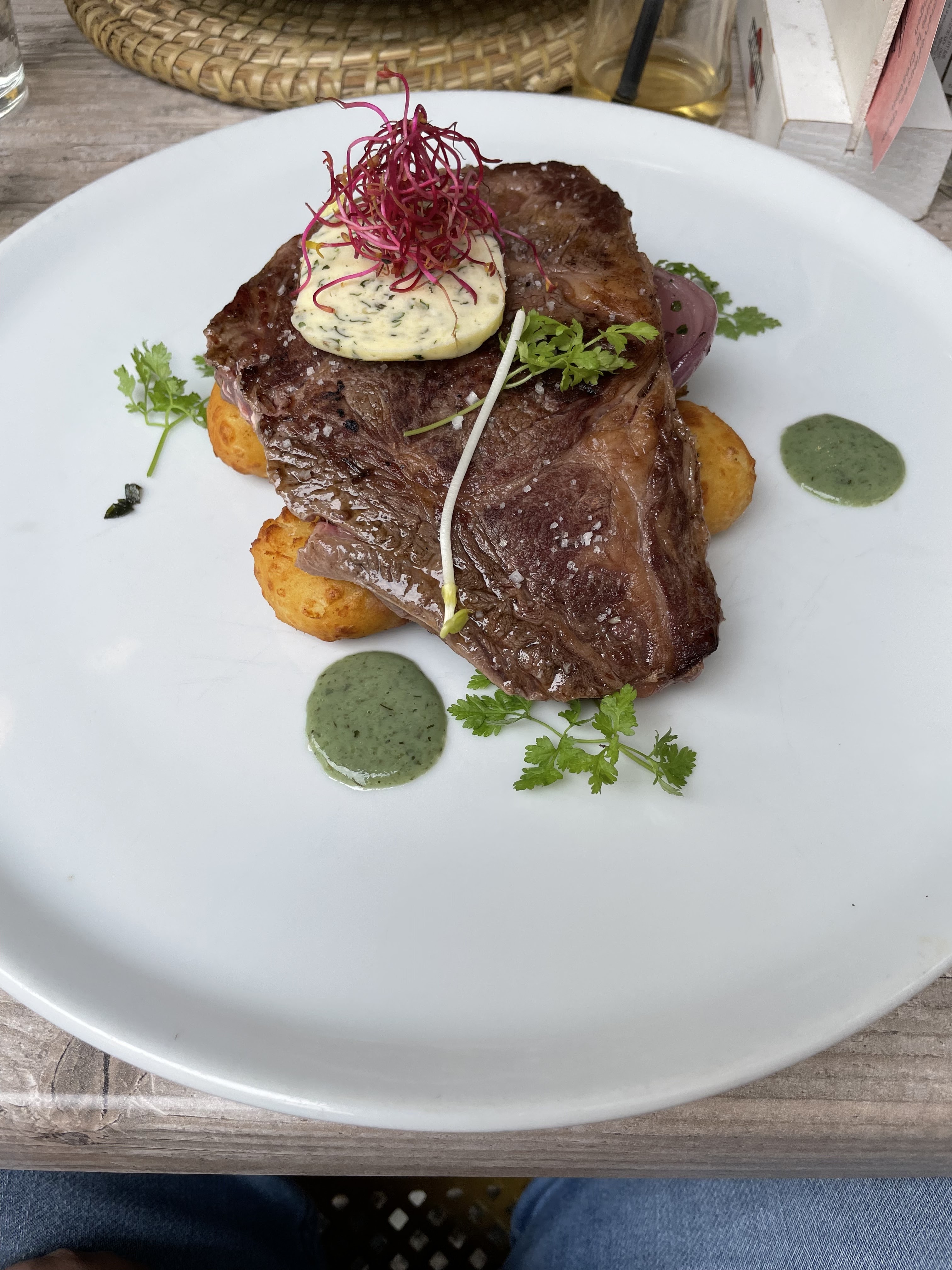 Joli restaurant avec une belle terrasse tres agreable mais grande déception. Lors de la réservation par téléphone nous avons demandé un choix végétarien et la réponse était positive. En arrivant sur place on se rend compte que le menu était vraiment restreint,très peu de choix même pour des onnivores. La pièce du boucher était pas bonne,dure et caoutchouteuse,une tout petit morceau pour 19 euro,le seul point fort:les frites.Pour le végétarien pas de choix,une pokebowl ou ils ont retiré le thon et aucune proteine en replacement...bref une salde à 15 euros...pour essayer de nous rassasier nous avons prix un plateau de fromage et la, une mini assiette avec trois bouts de fromage du supermarché qui se courent après...pour terminer une boule de glace périmé,complètement glacé,elle était dans le congélateur depuis l'été dernier...donc à ne pas refaire...
