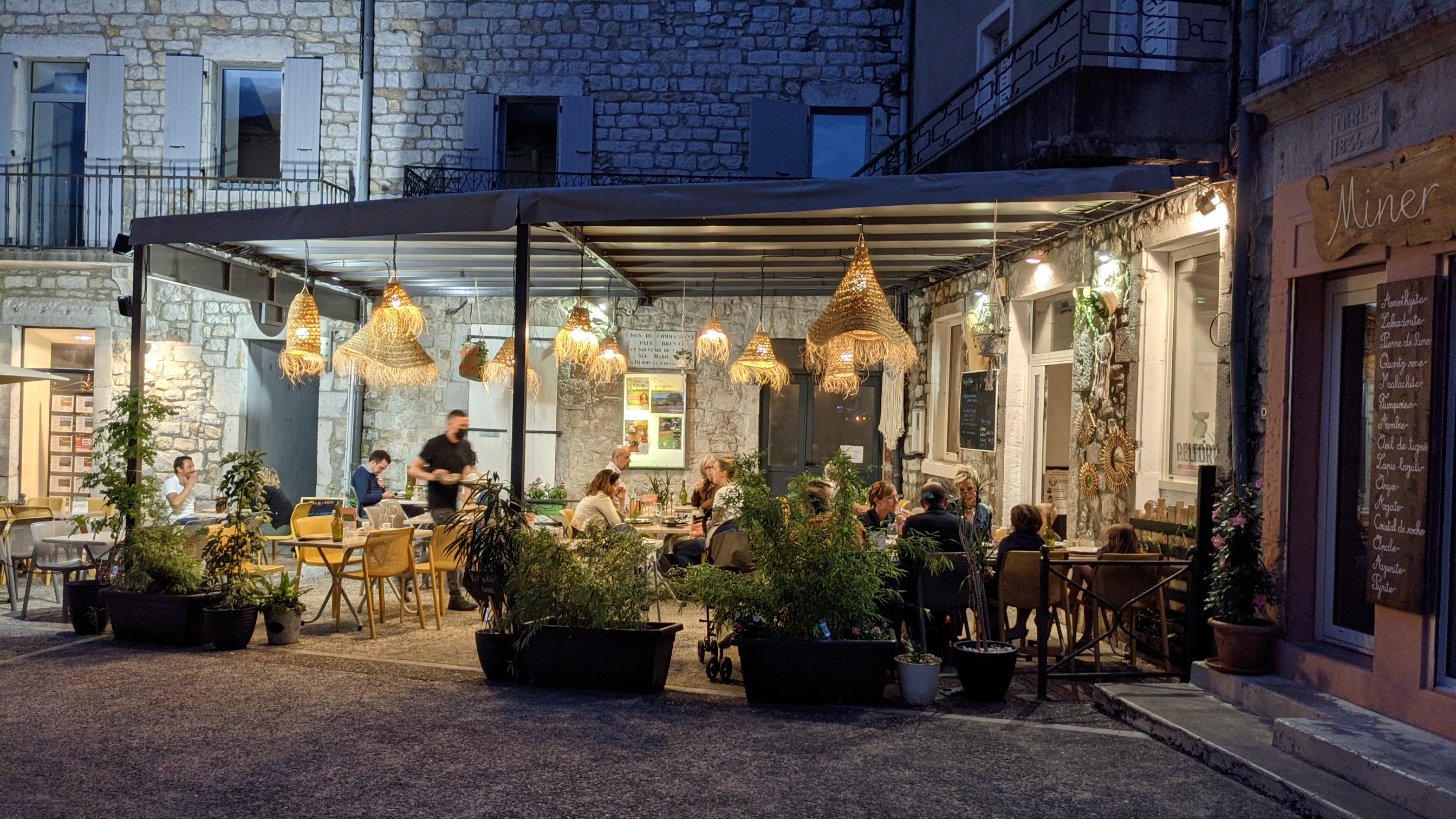 Un restaurant en plein centre de Ruoms avec une jolie terrasse et une petite salle intérieure très bien décorée. Le menu est volontairement réduit car uniquement des produits frais et des desserts fait maison . Le service est fluide , professionnel et agréable. Rien a redire sur la totalité du repas. Nous nous sommes régalés . A très bientôt