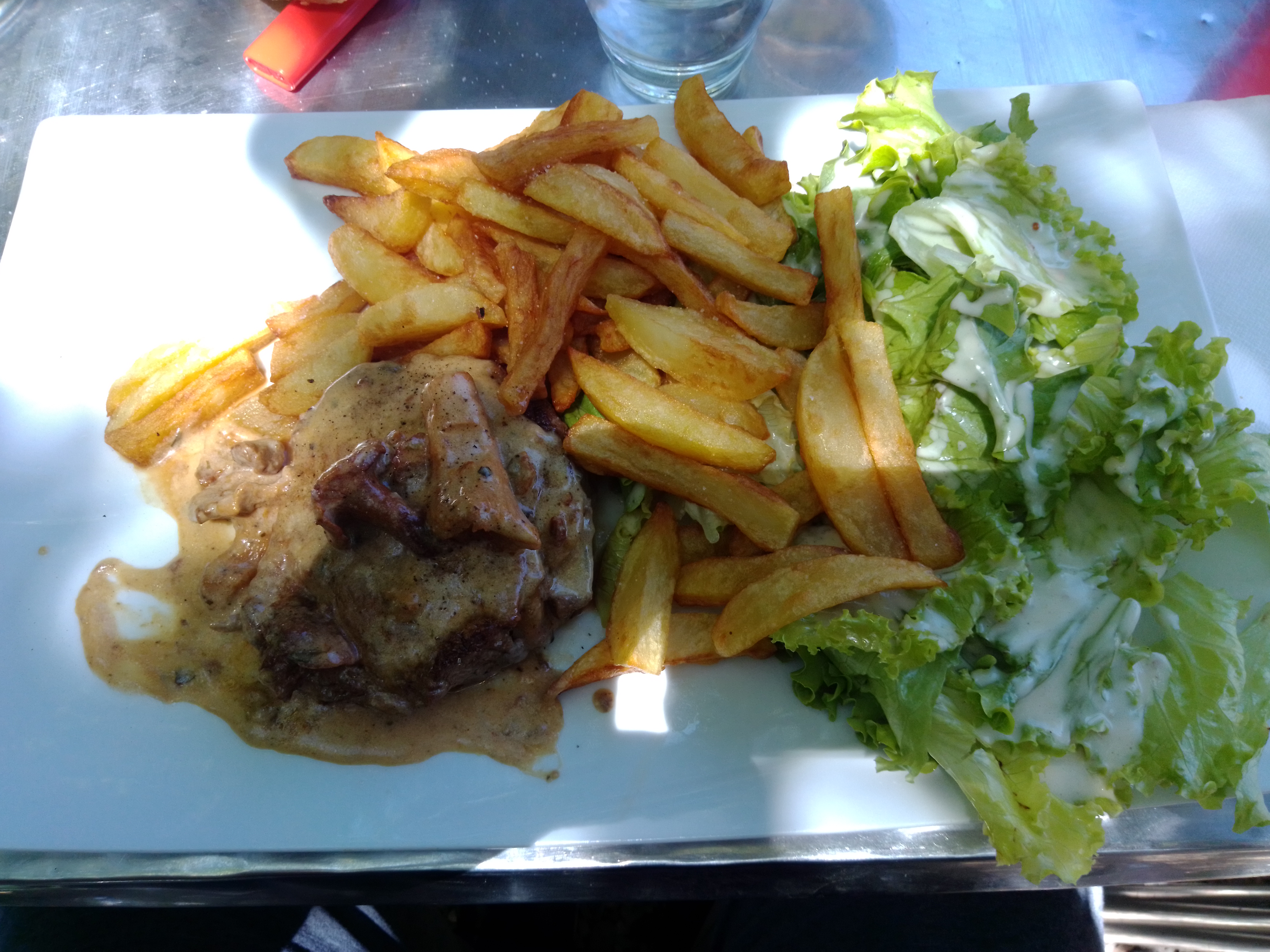 Très bon repas, simple et copieux. L'entrecôte aux girolles était bonne , servie avec des frites maison. Service rapide. Rien à dire