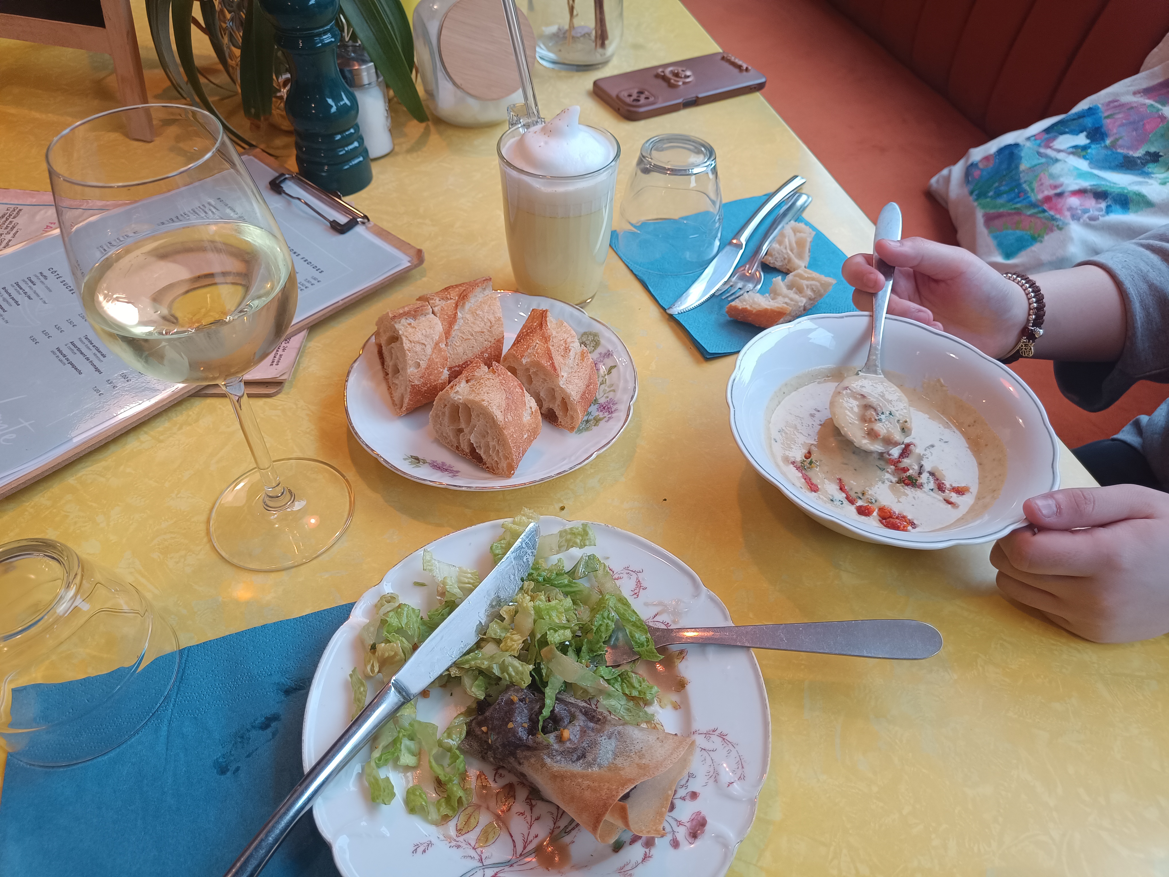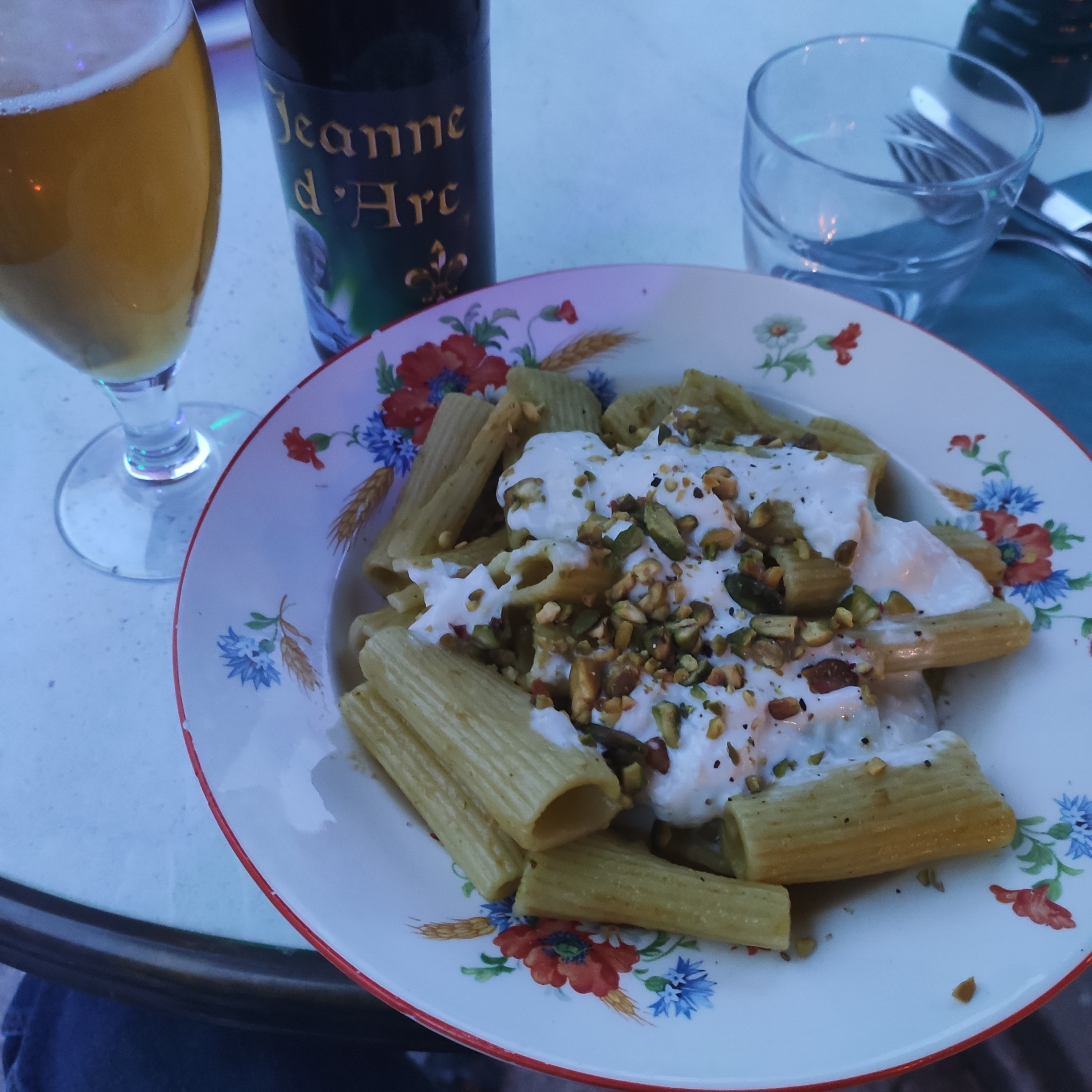 Un service au petit soin malgré l'arrivée tardive (21h), de l'originalité dans les plats, et une option végé que j'ai saisie (pâtes à la pistache), très bon. Mention spéciale au chocolat chaud noisette : excellentissime !