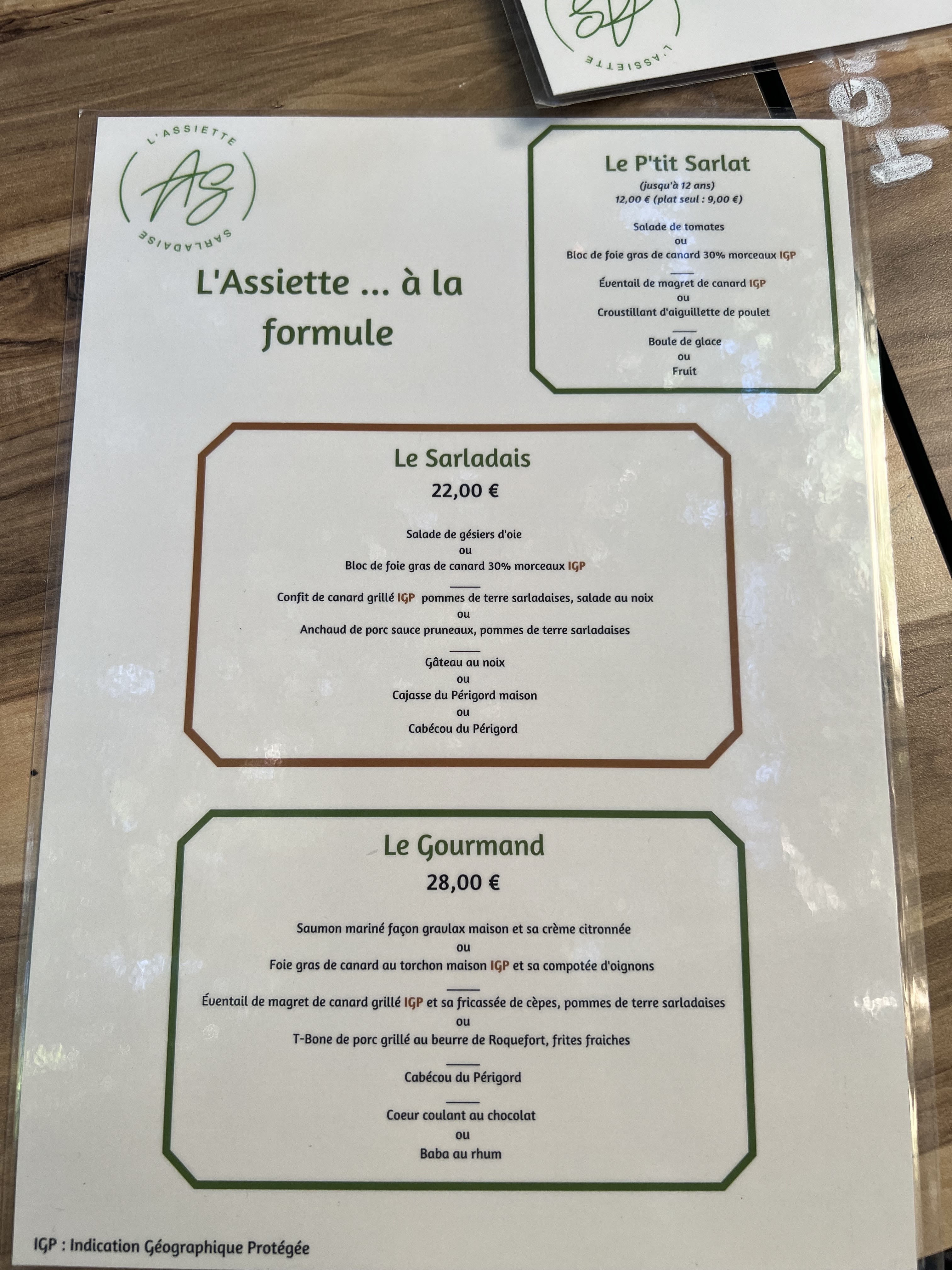 Venu manger deux fois à l'Assiette Sarladaise durant nos vacances. Nous avons été accueillis de la meilleure des manières. Le calme de cette petite place sous les arbres nous a charmé. Les plats sont copieux et de qualité. Bref, si vous cherchez un endroit pour manger au calme loin des rues bondés de Sarlat, c'est à l'Assiette Sarladaise qu'il faut aller !