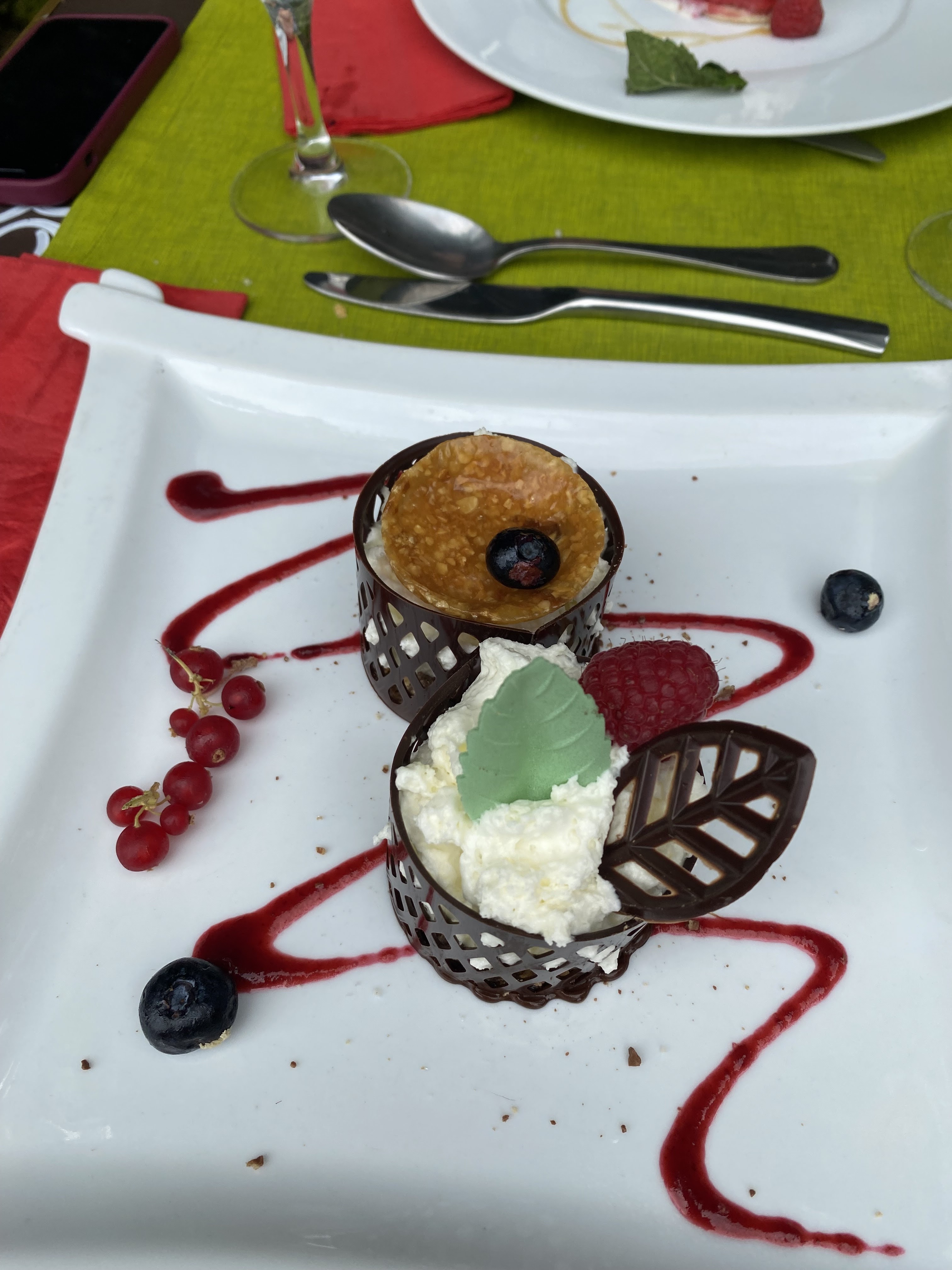 Une table en terrasse avec le bruit de l'eau de la petite cascade qui coule. Service impeccable. Accueil chaleureux des serveuse. Les assiettes sont très bien présentées. Le confit de canard avec risotto et sauce cèpes un vrai délice et le magret de canard aussi. Les desserts sont copieux et extra gustativement.Ce restaurant est une belle découverte, on y reviendra. Je recommande à 100%.
