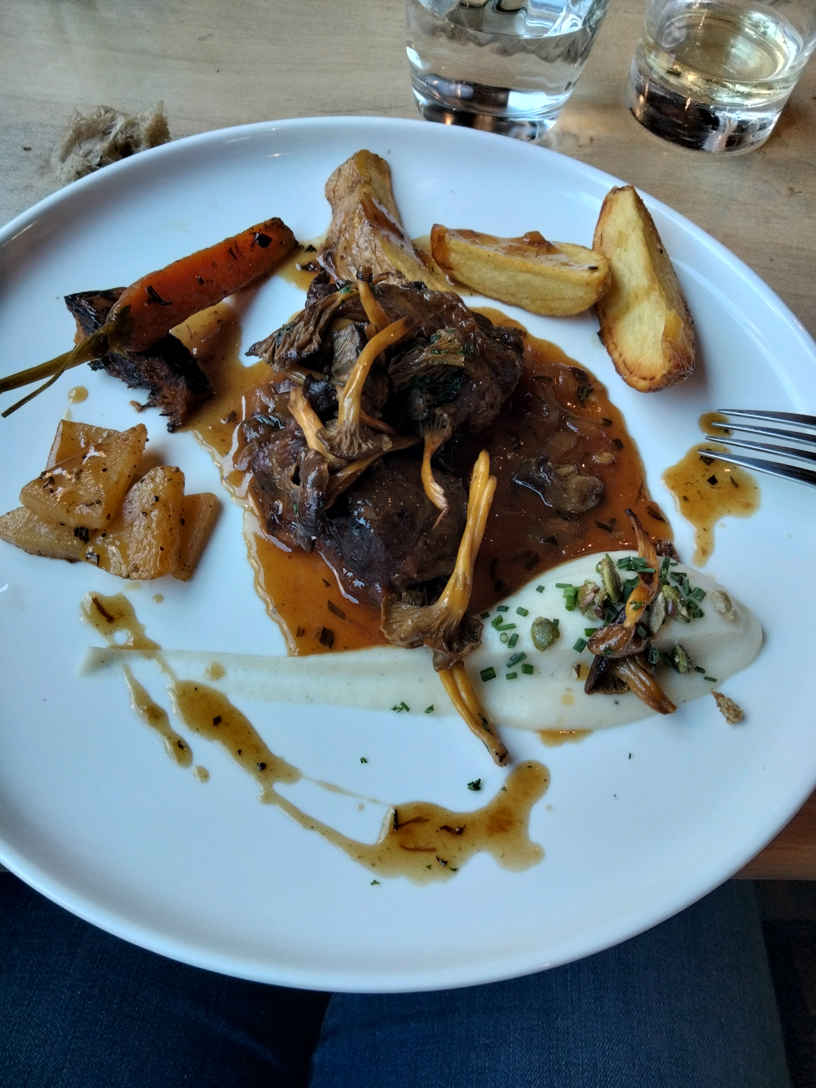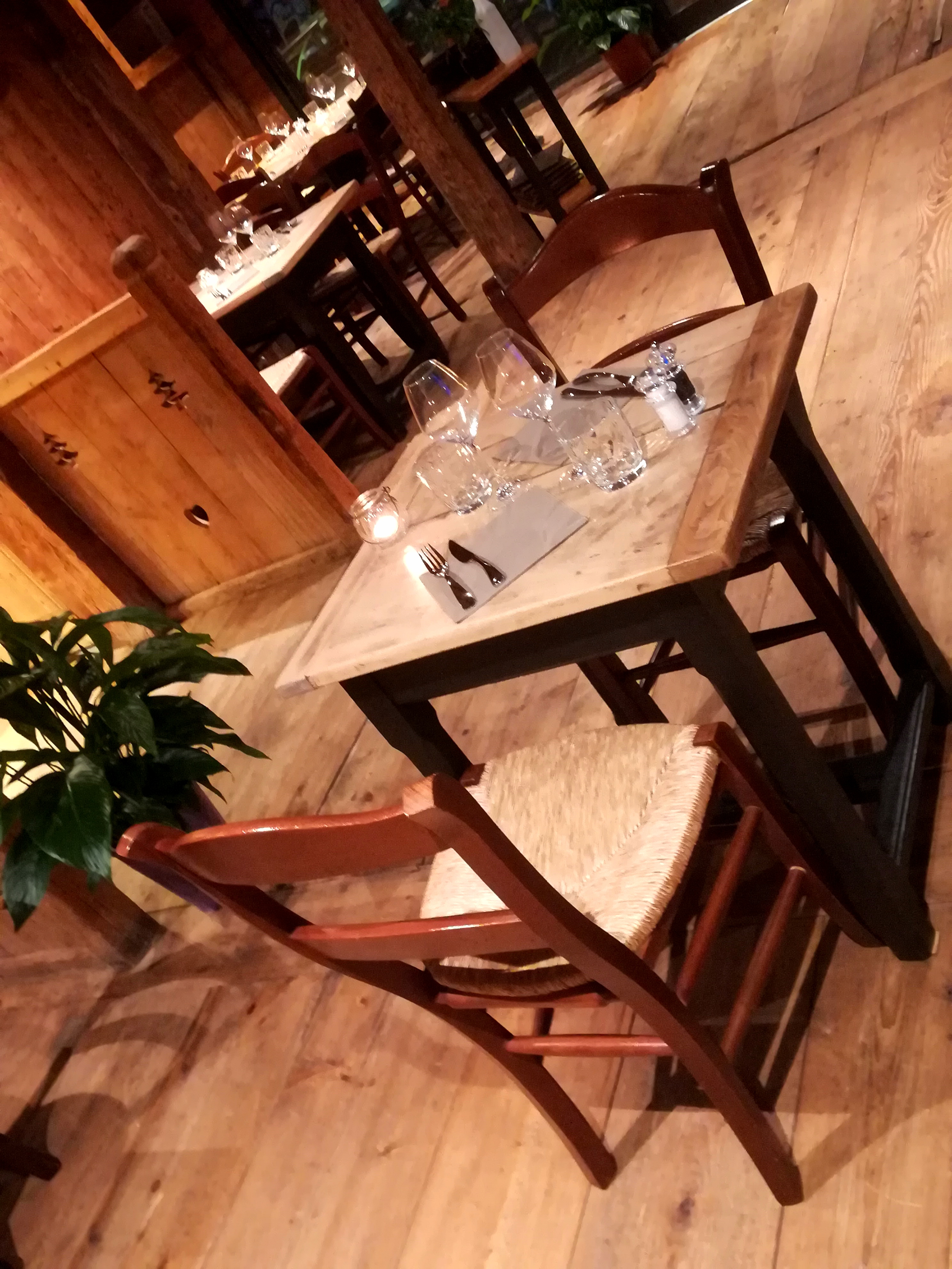 Ambiance chalet de montagne, cocooning ! Poutres apparentes, service au top. Nous avons testé la raclette aux cèpes et ce fut un pure délice ! Celle ci était accompagnée d’une assiette de charcuterie (saucisson aux noisettes, jambon cru, jambon blanc, etc…) salade verte et cornichons + 5 petites pommes de terre. Honnêtement ça suffisait largement puisque la bedaine était tellement remplie que nous n’avons pas eu besoin de dessert. Le prix : 26€/personne sachant que la raclette de base est à 24€