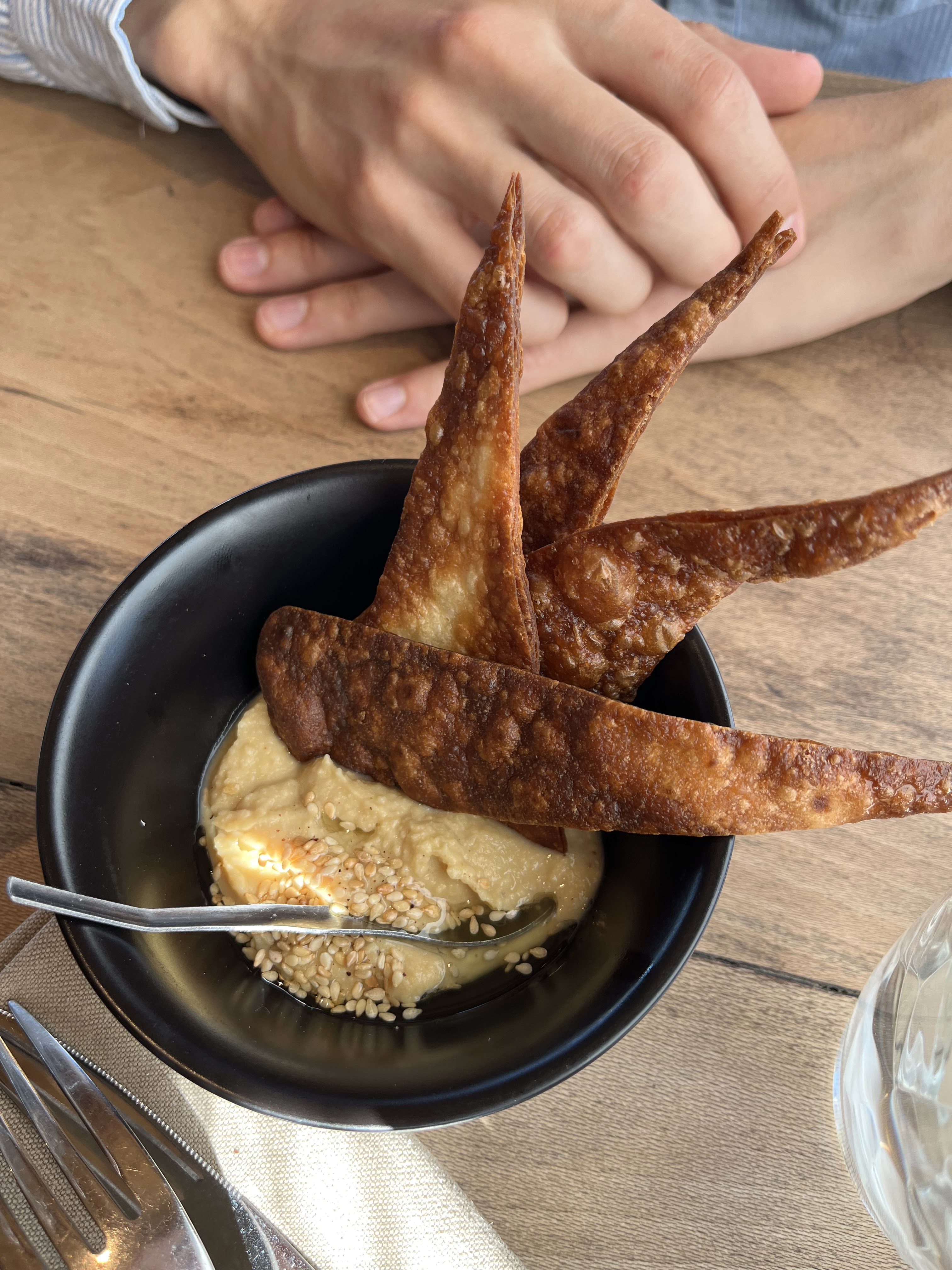 Apéritifs servi avec un houmous maison, Nous avons commandé un plateau de fromages avec différents assortiments de la région, tous très bons, quantité généreuse. Plats très généreux en quantité et très bons. Service rapide et irréprochable.