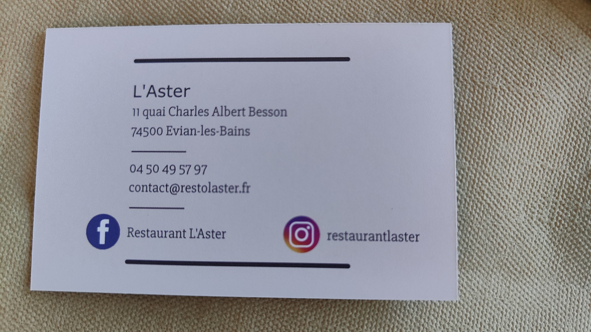 Nous avons déjeuné à l'aster la semaine dernière et nous nous sommes régalés. Le plat du jour n'est vraiment pas cher pour la qualité proposée. Le service est extra, la serveuse et le serveur qui se sont occupés de nous sont vraiment charmants et très professionnels. Tout était parfait, surtout ne changez pas ! Nous reviendrons sans faute lors de nos prochaines vacances à Evian !