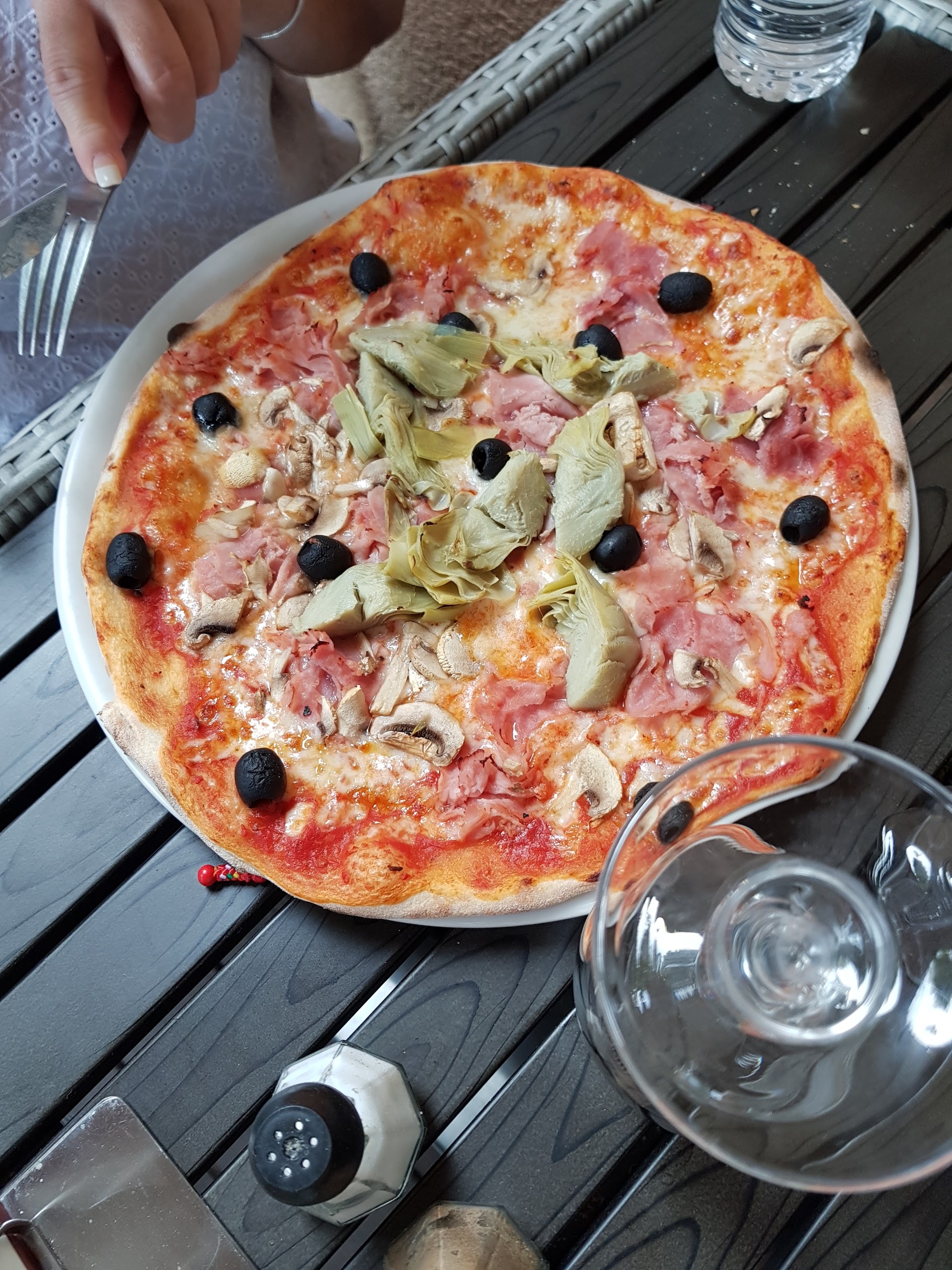 Les pizzas sont bonnes,les serveurs agréables, mais méfiez-vous du prix des vins sur la carte.le prix des verres de vin sont dans la même colonne que celui des bouteilles.... 75 cl.Et là grosse surprise sur l addition. J ai essayé de discuté avec la patronne qui s est montré intraitable ,en nous explicant ses charges sociales??!!!(dont personnellement je me moque)!C est dommage ,cela aurait pu être un moment agréable.