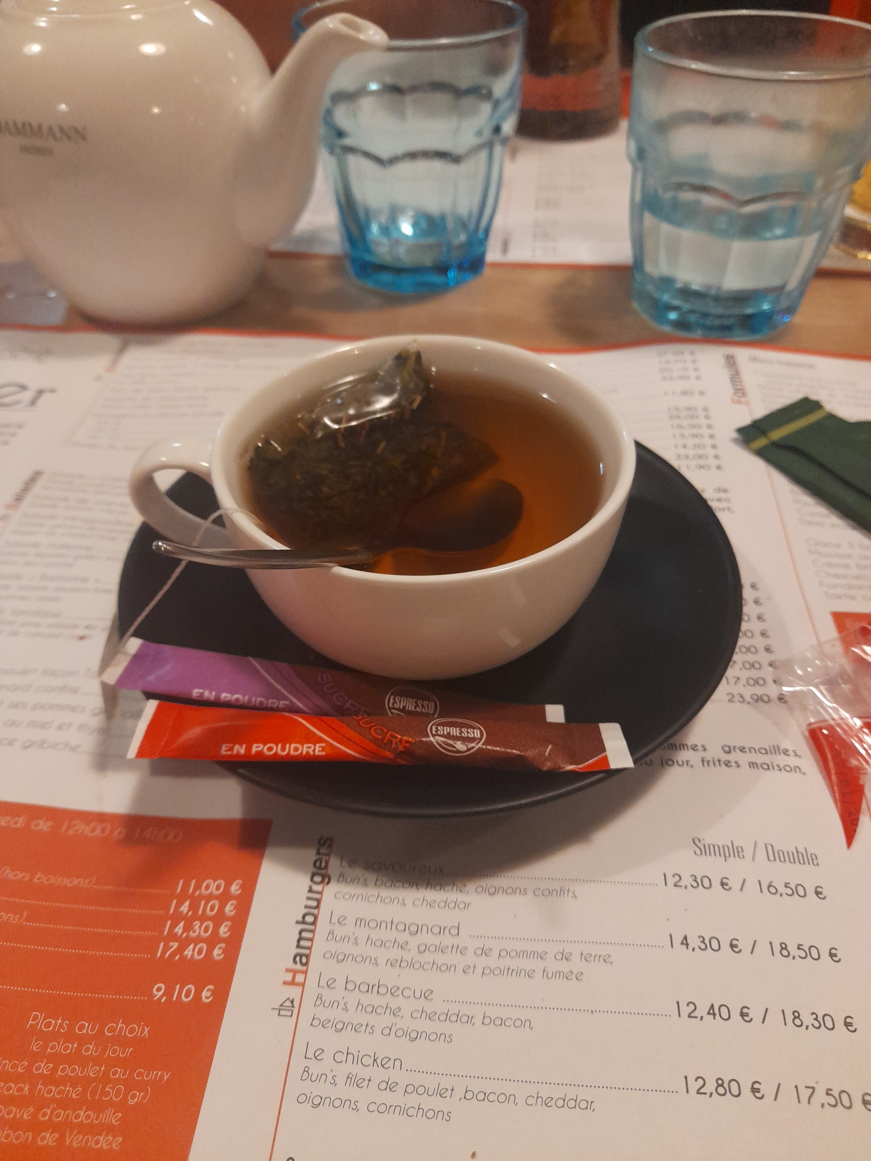 Les plats sont très bons, le prix est resonnable, le service de madame Mélanie est excellent et l'anbience est très bonne et la tisane est exelante (voir photo)