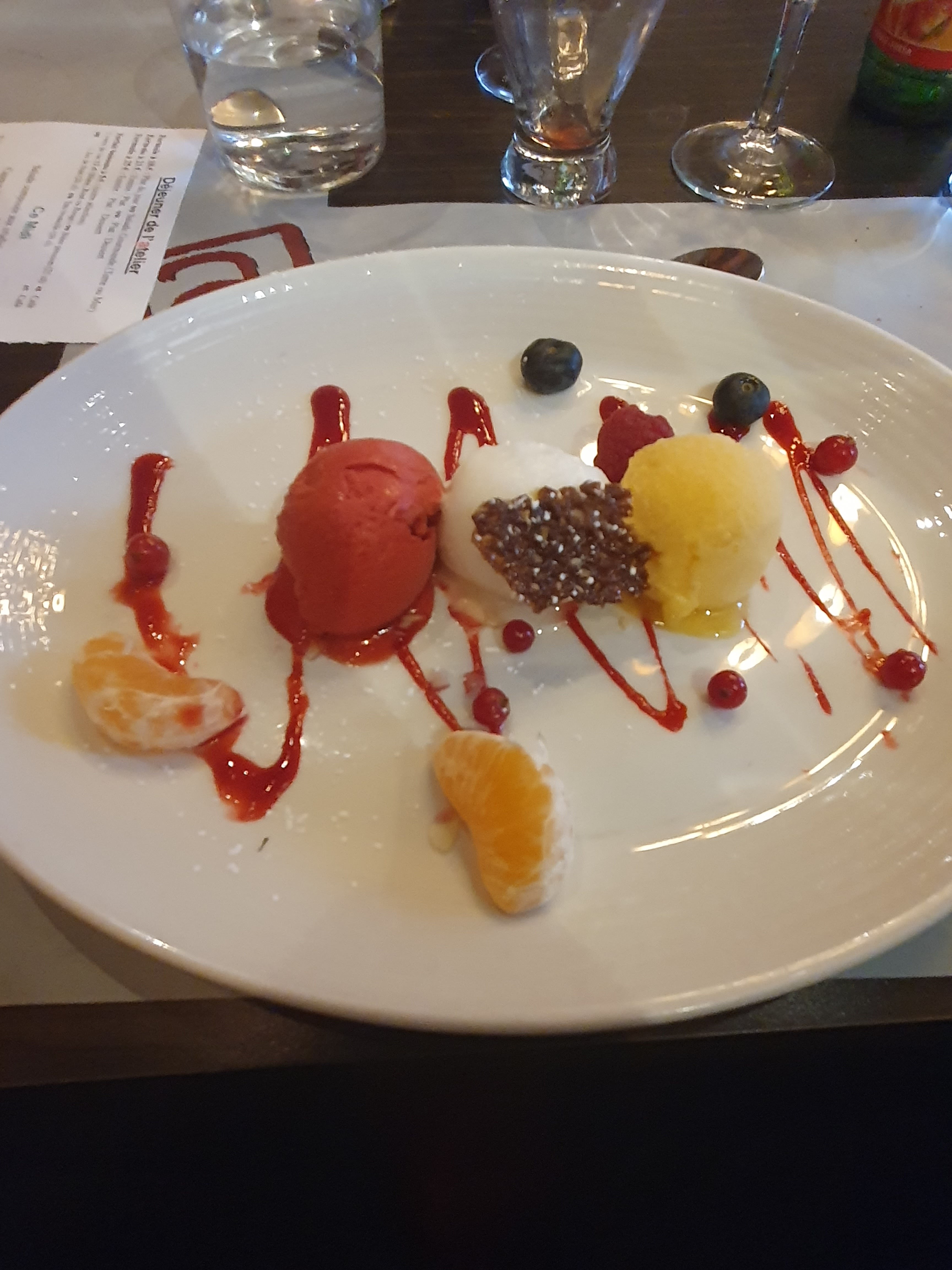 Très bon moment chez l'Atelier Menu élaboré, suffisamment copieux Service aux petits soins ponctué de visite du chef Excellente adresse