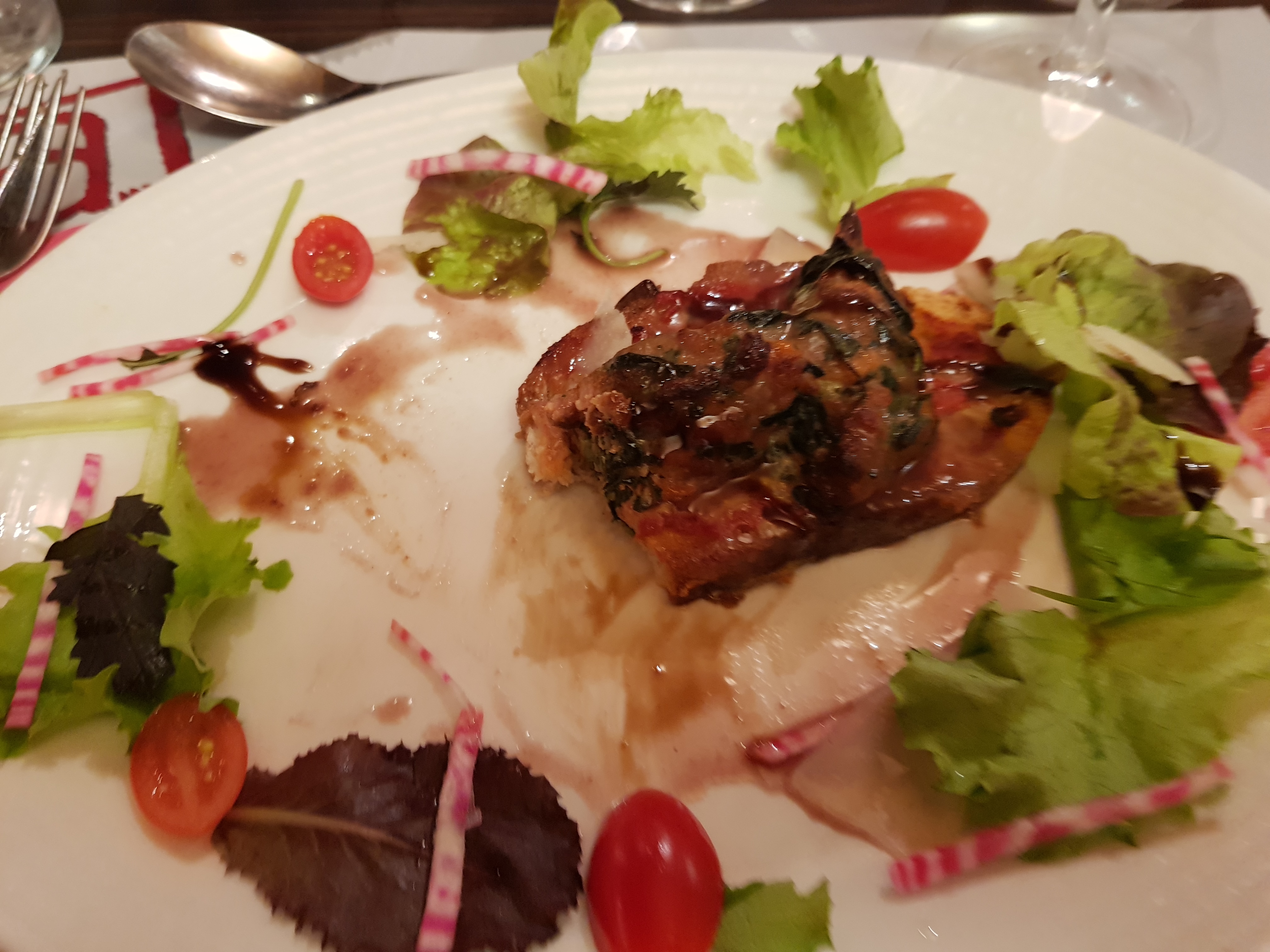 Les plats étaient bons. Par contre nous n’avons pas pu finir l’apéro qu’une salade de bienvenue était devant nous. Puis nous en étions chacun à la moitié de la salade que les plats sont arrivés et la serveuse nous a gentiment fait comprendre d’arrêter de manger nos salades pour qu’elle puisse poser nos assiettes. Donc la salade nous ne l’avons pas fini et avons manger nos plats . Si vous voulez manger en moins de 35 min aller dans ce restaurant mais pour des plats à 19€ ça me paraît inconcevable de presser les gents surtout que nous sommes arrivés à 19h30.