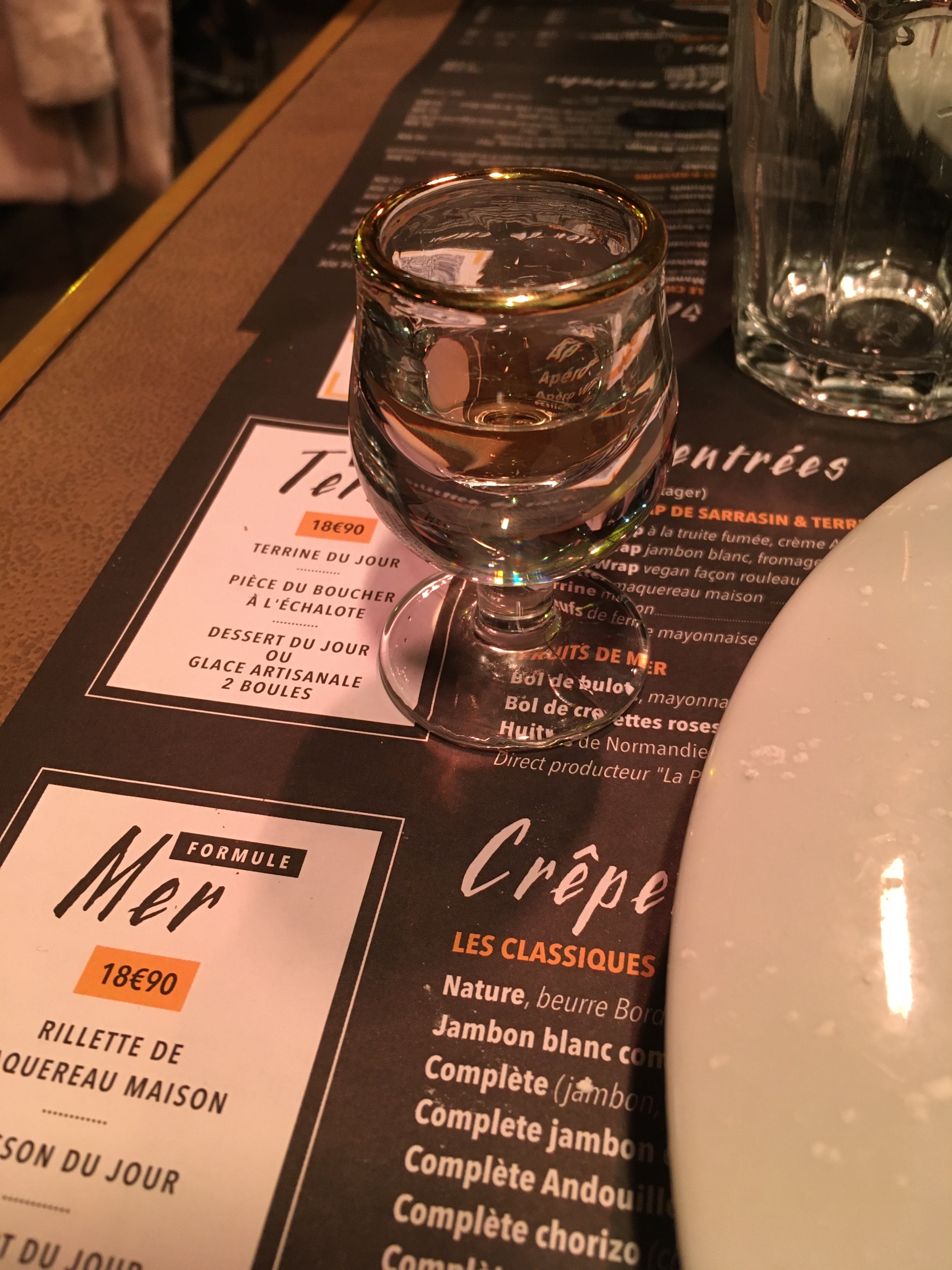D'excellentes galettes complètes mais un peu déçus par les crêpes dessert plus banales, on s'attendait à des crêpes aussi goutteuses que les galettes vu leur prix. La goutte de calva offerte en fin de repas était appréciable. Rien à redire sur le service très efficace.