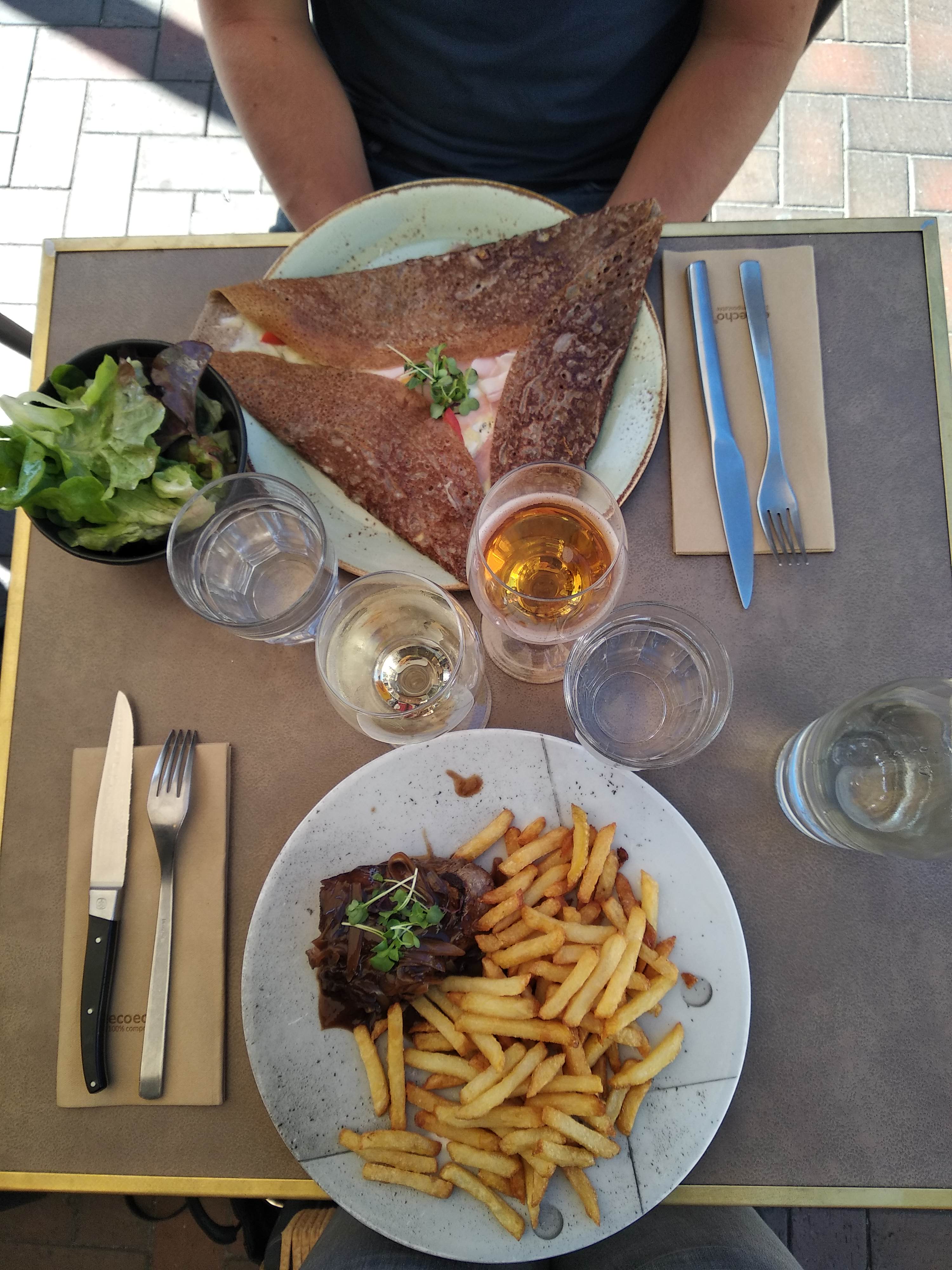 Très bonne crêpe complète jambon oeuf...salade en accompagnement facturée 3 euros !et 3 étoiles car on nous debarasse trop vite...pour ne pas dire expédie vite