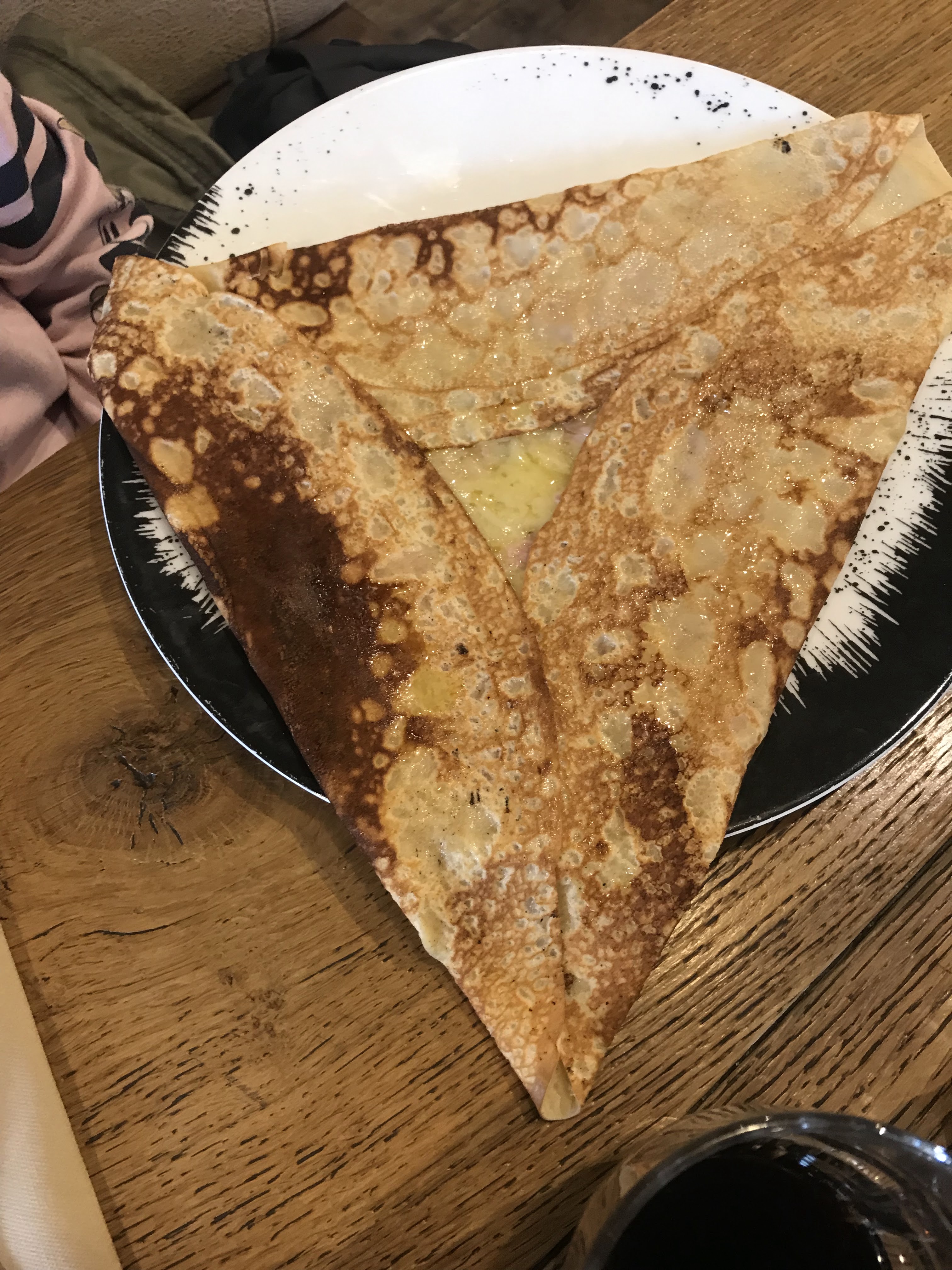 Super resto : 2 crêpes salées bien garnies et bonnes, le personnel est très agréable et efficace ! Nous avons été bien accueilli et bien servi malgré le monde.