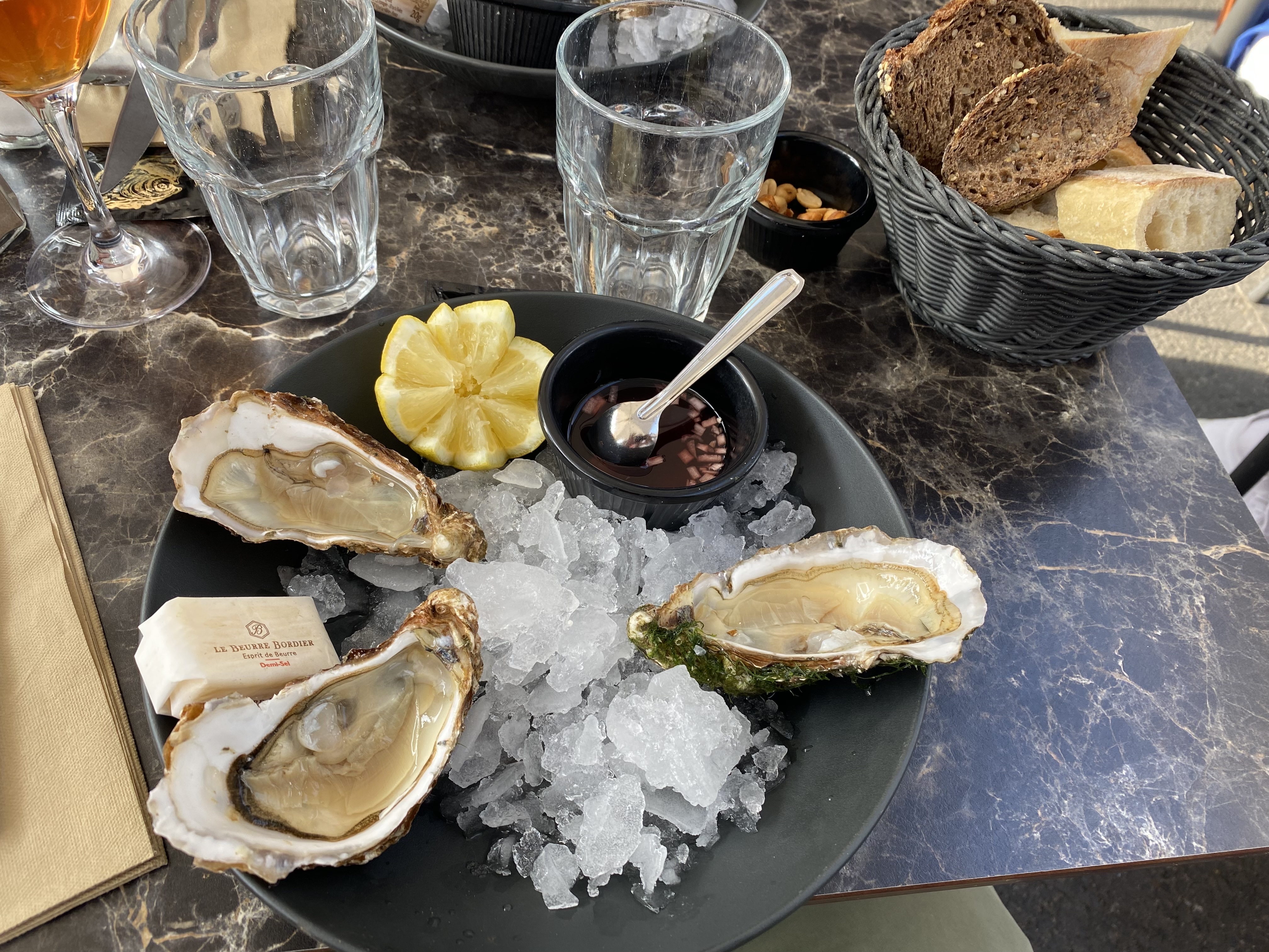 Très bien placé . Repas correcte , les huîtres un peu cher …21€ les 10. Ambiance gâchée par une table de personnes très bruyantes …et alcoolisé . Service rapide et sympathique. Très bonne crêpes bien garnis . Une bonne adresse