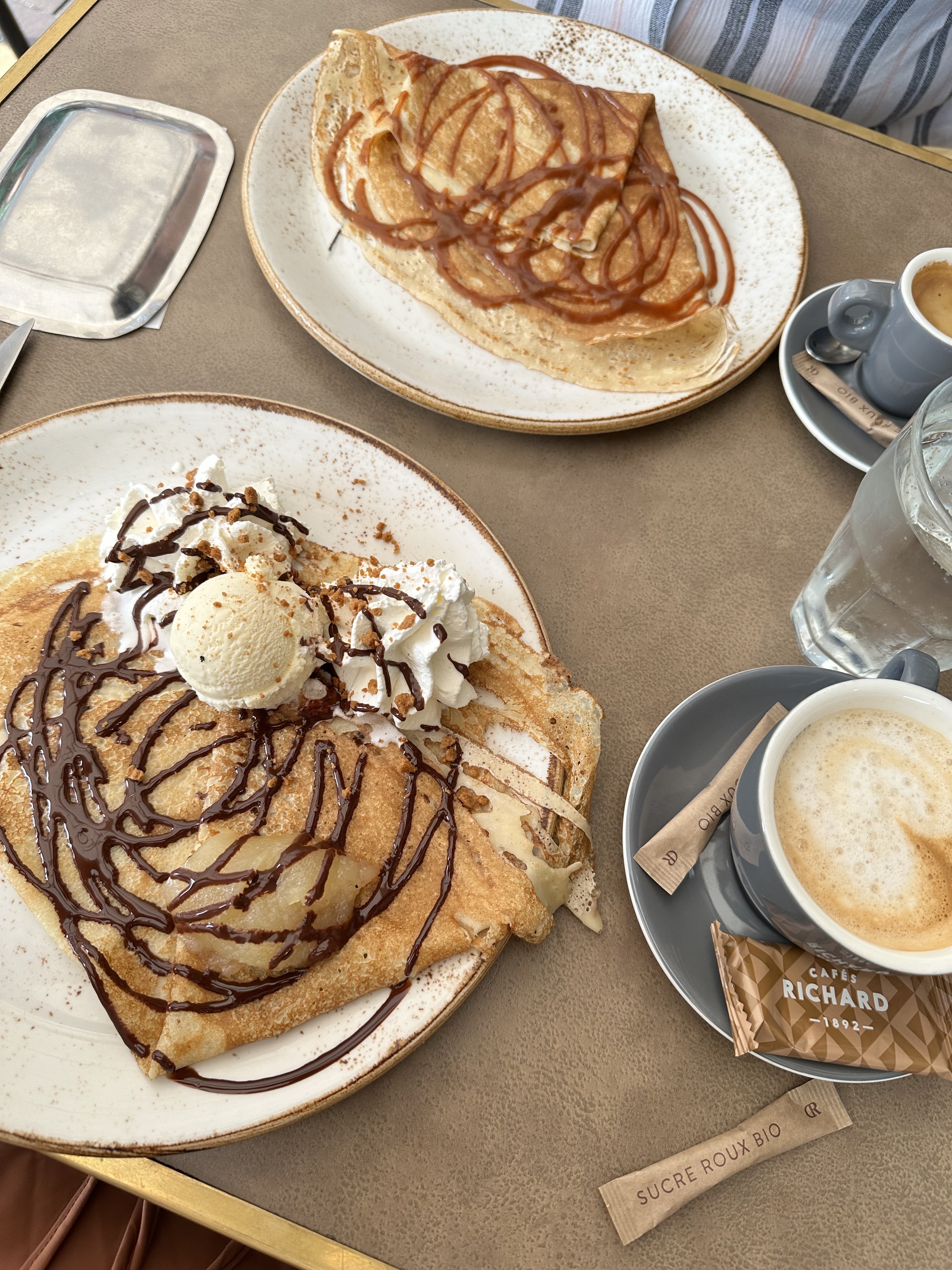 Crêpe Belle Hélène délicieux, par contre le crêpe au caramel il manquait de goût et du caramel Service rapide