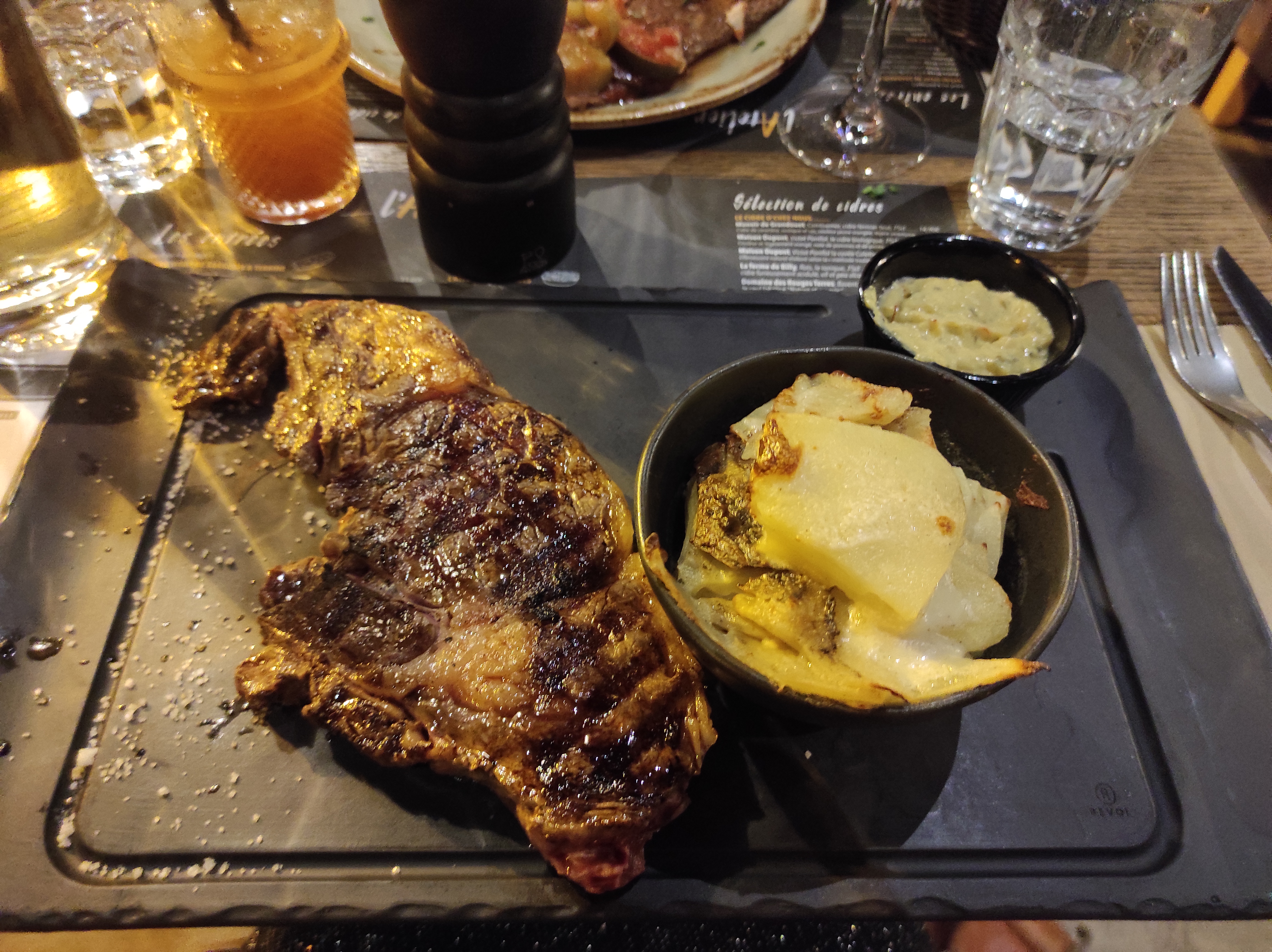 Très bien dîné, les frites et la viande étaient délicieuses. Les galettes sur la table d'à côté avaient également l'air bonnes! Service rapide et sympathique.