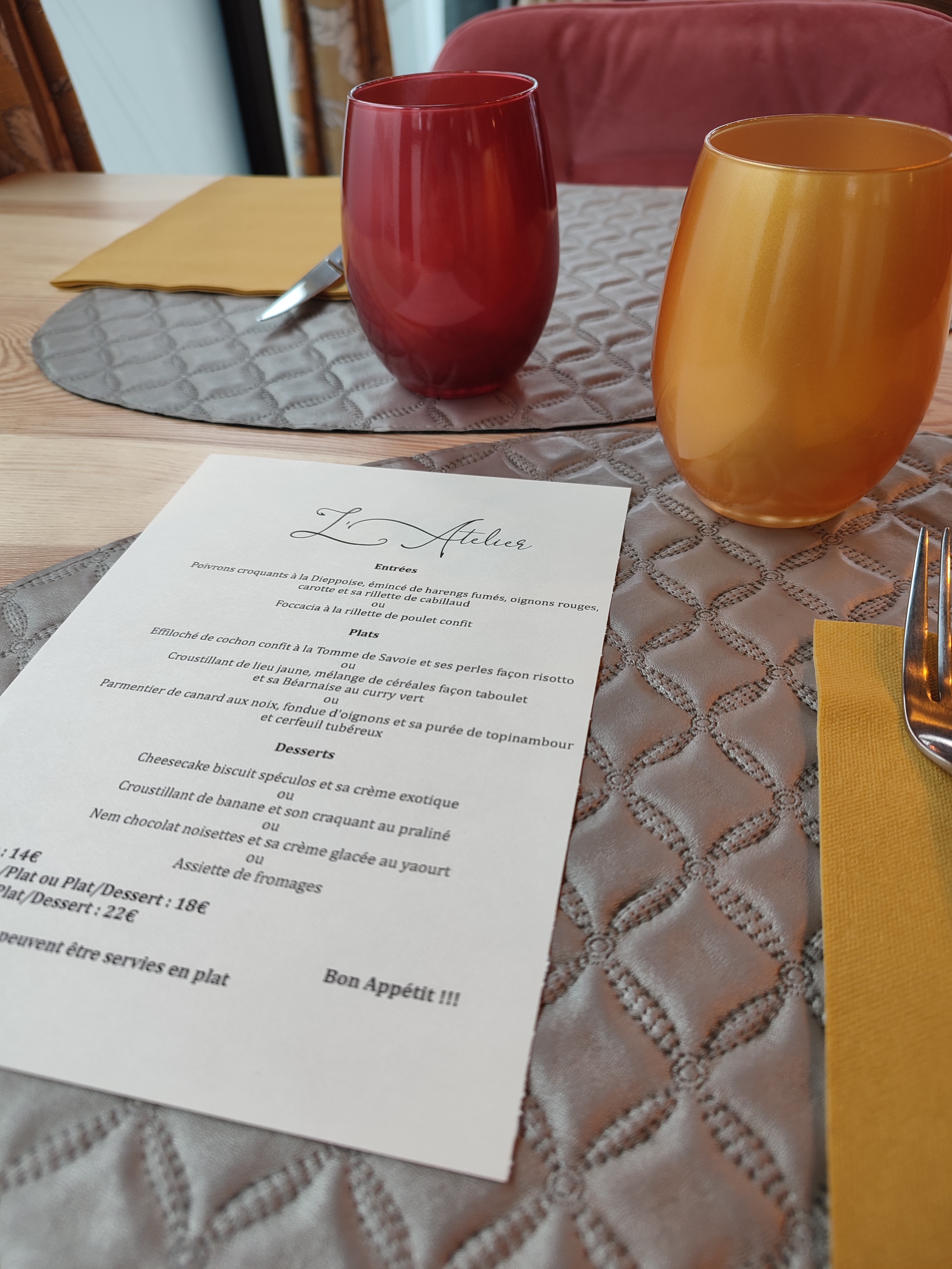 Très bonne expérience au sein du restaurant l’Atelier avec des plats avec des produits de qualité, frais et de saison ! Les plats étaient savoureux et très bien assaisonné, sans fautes, c’était un délice. Les prix sont très abordables pour la qualité des produits que l’on mange. De plus, les employés sont chaleureux et souriants, je recommande ce restaurant.