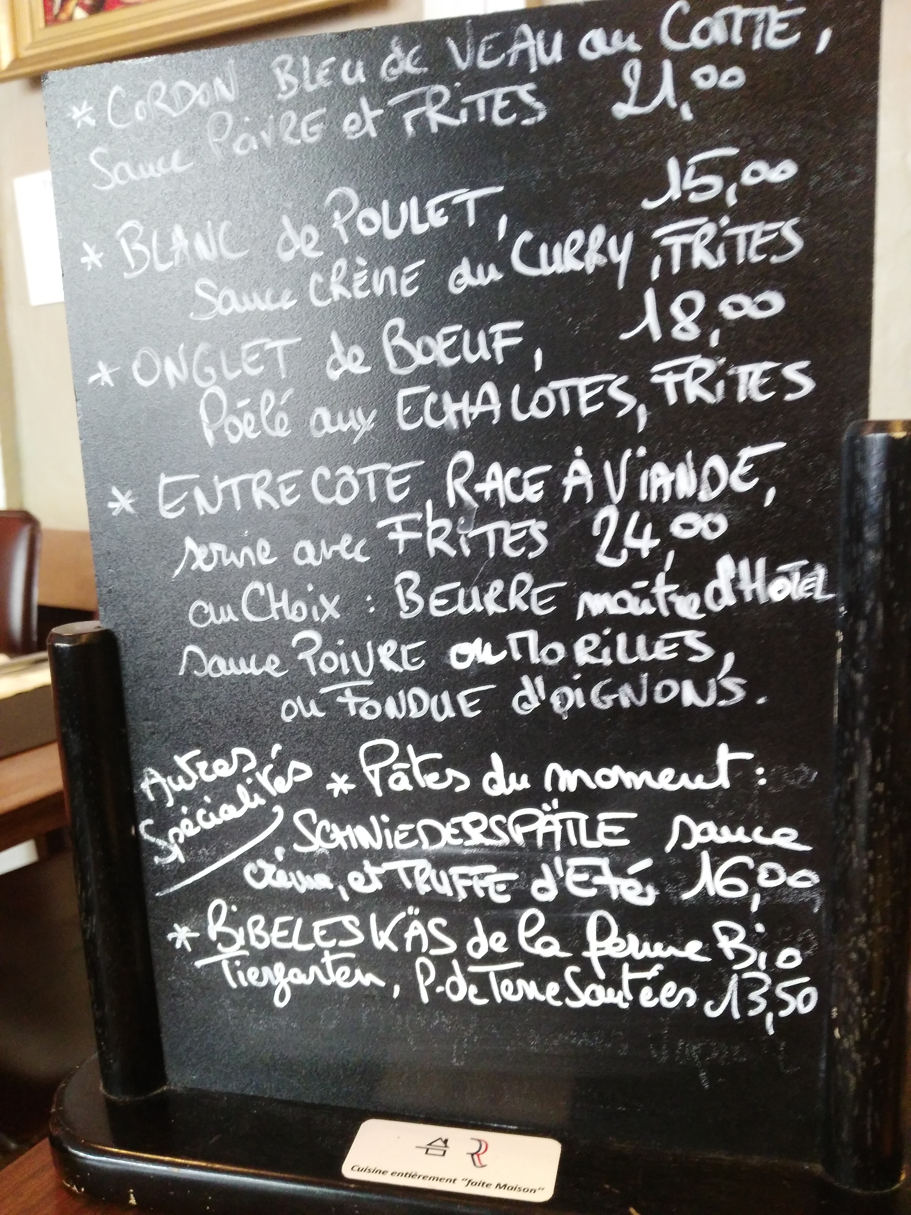 Cuisine de qualité, onglet gouteux cuit parfaitement, les frites sans intérêt à croire qu'en Alsace on ne sait pas faire.
