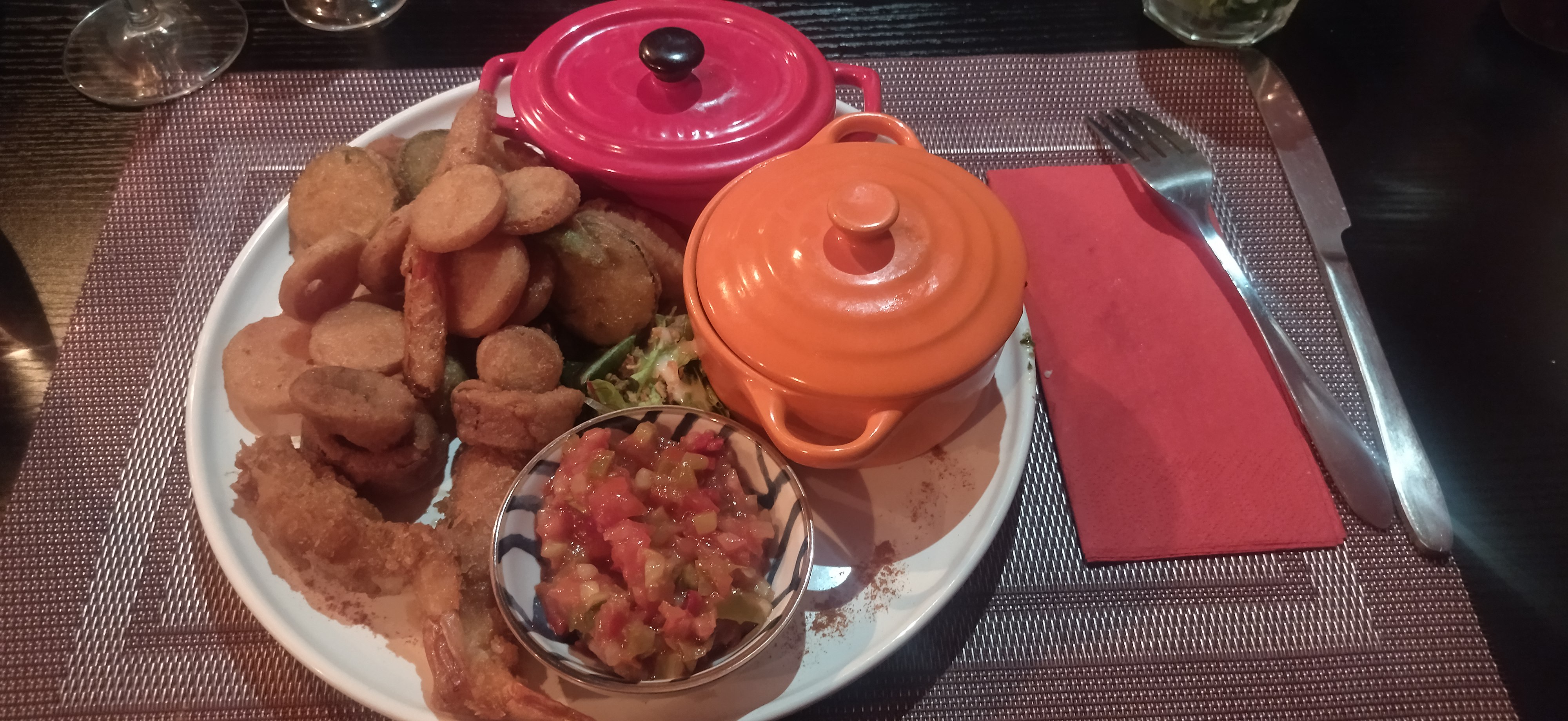 Quel bel idée de voyager à travers des plats de chacun des pays proposés sur la carte accompagné de tapas .. un très bon repas ou on hésite à prendre un dessert tellement on a bien mangé mais ce serait dommage de loup6le fondant au chocolat