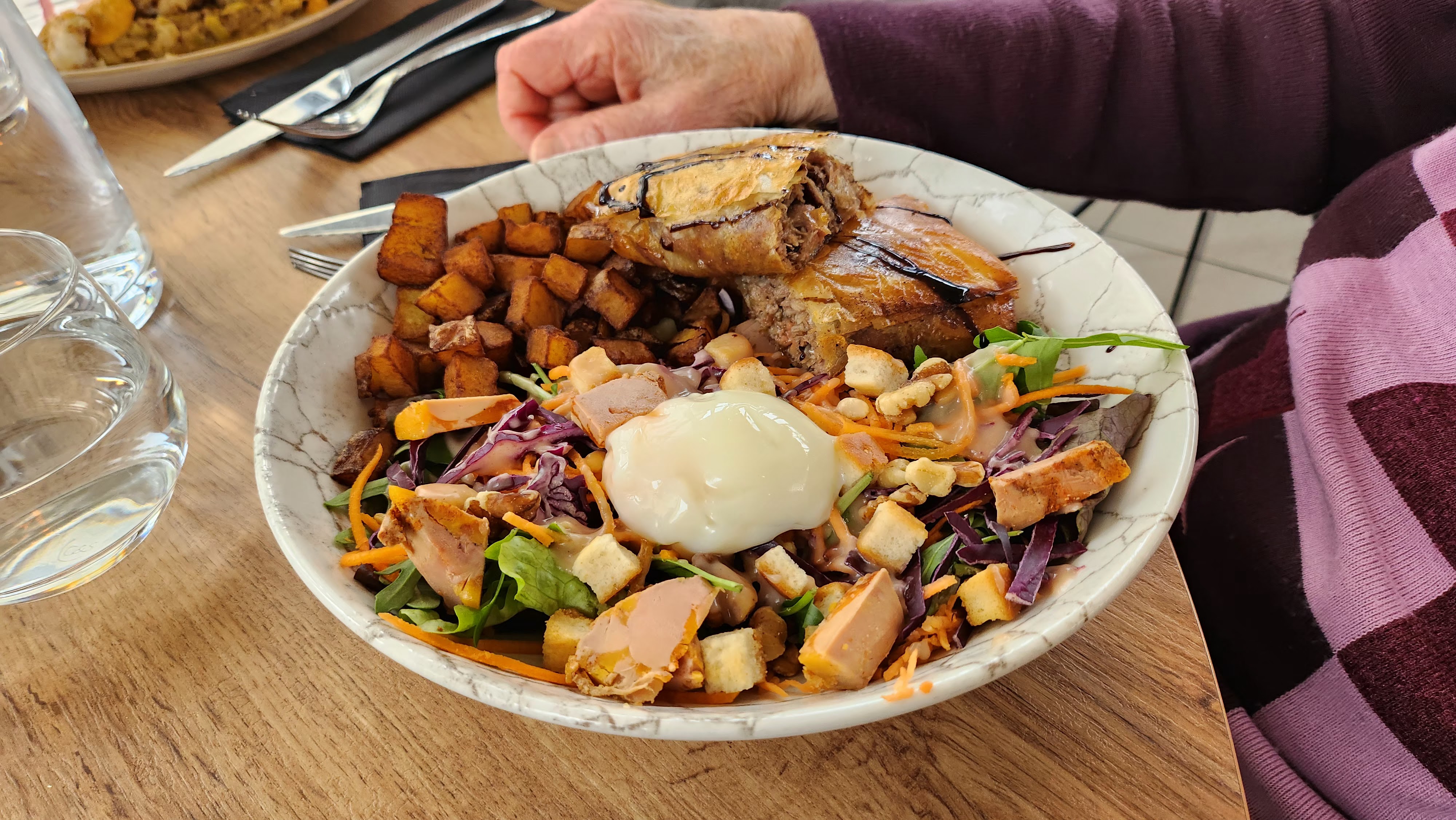 Repas de famille pour un mariage un samedi midi. Le restaurant était plein même en terrasse mais toute l'équipe a été à l'écoute, souriante et dans l'humour. Les plats sont copieux et raffinés. Tout est parfait Je recommande sans limite