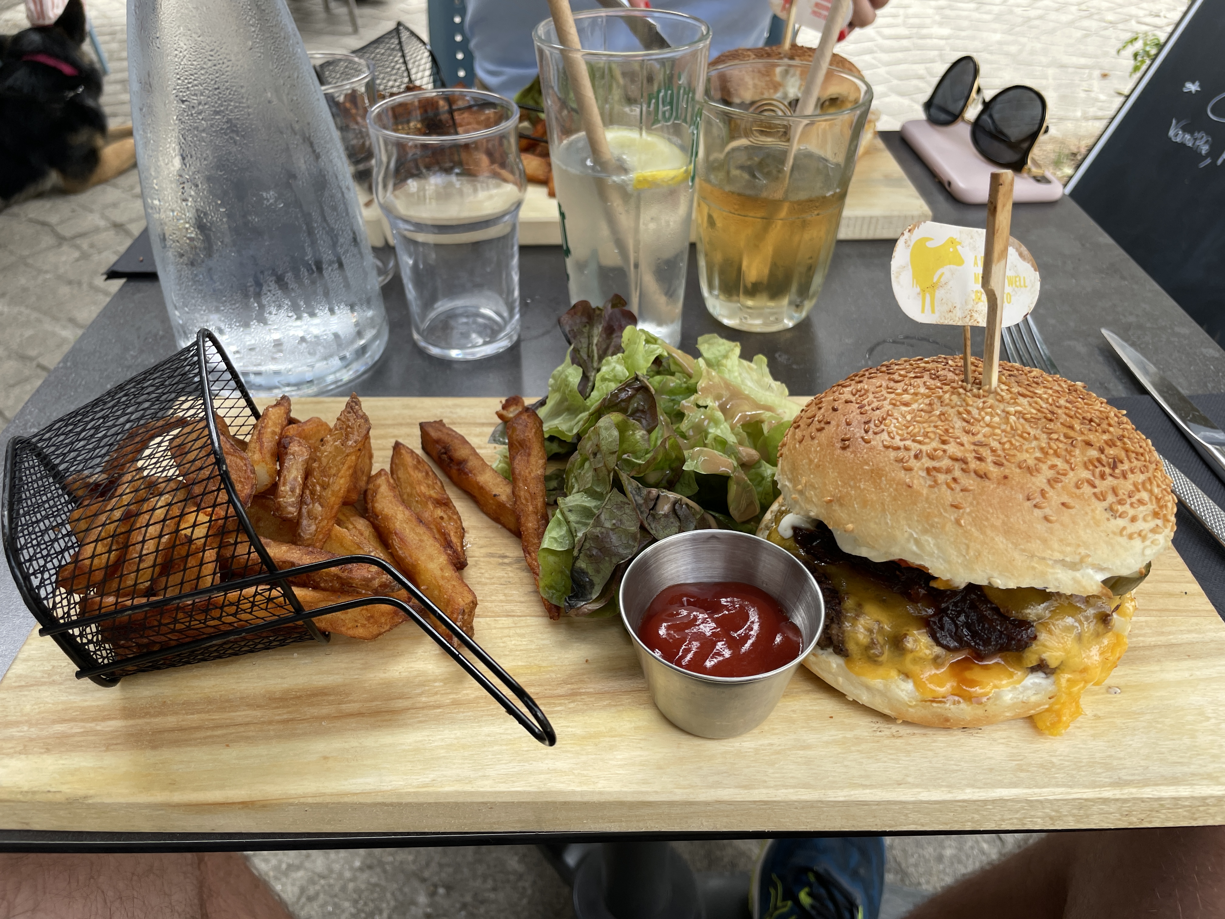 Très bon déjeuner dans un bel endroit, bonne cuisine que ce soit la salade de poulet, les burgers ou le camembert. N hésitez pas à prendre un dessert, très beau et très bon. Excellent