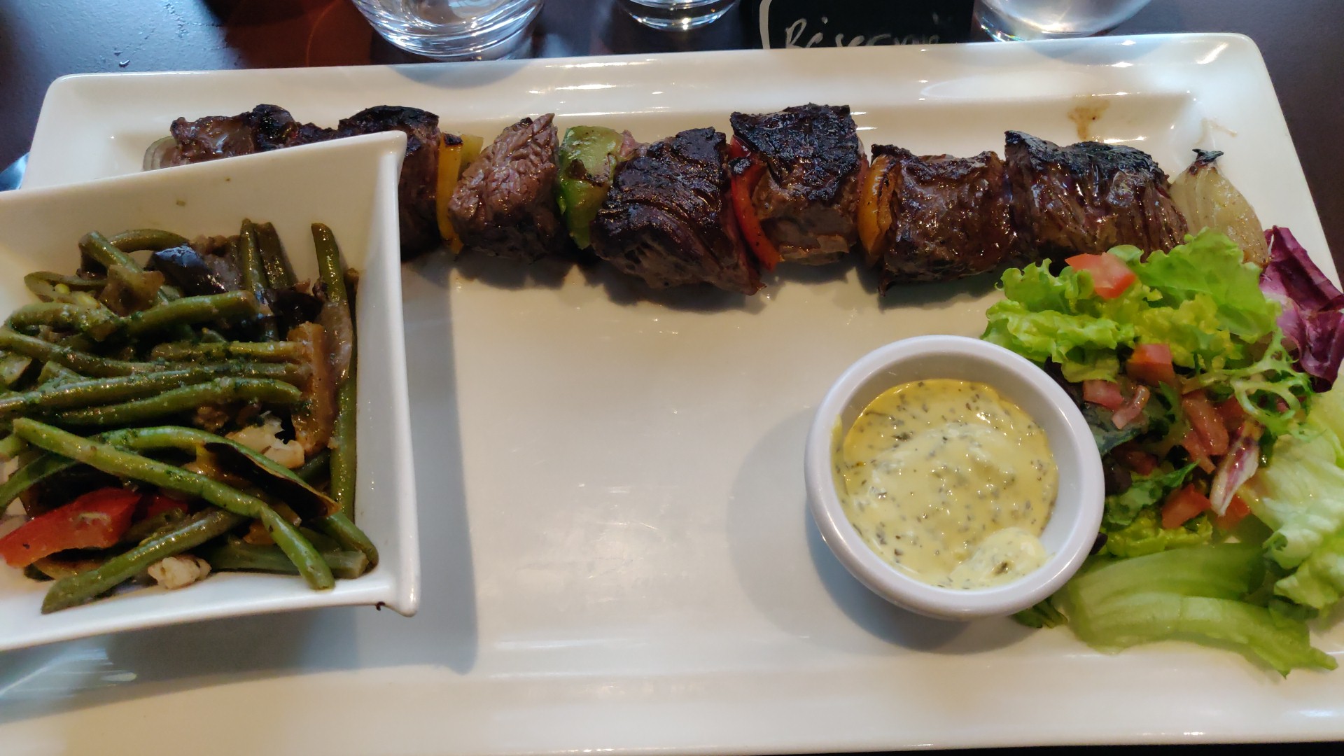 Les plats sont trop cuits le saumon sec, les haricots verts avec des fils, l entrecôte on a retrouvé un bout de plastique la cuisson pas respectée! Le restaurant pizzeria d’à cote est bien meilleur si vous devez choisir !