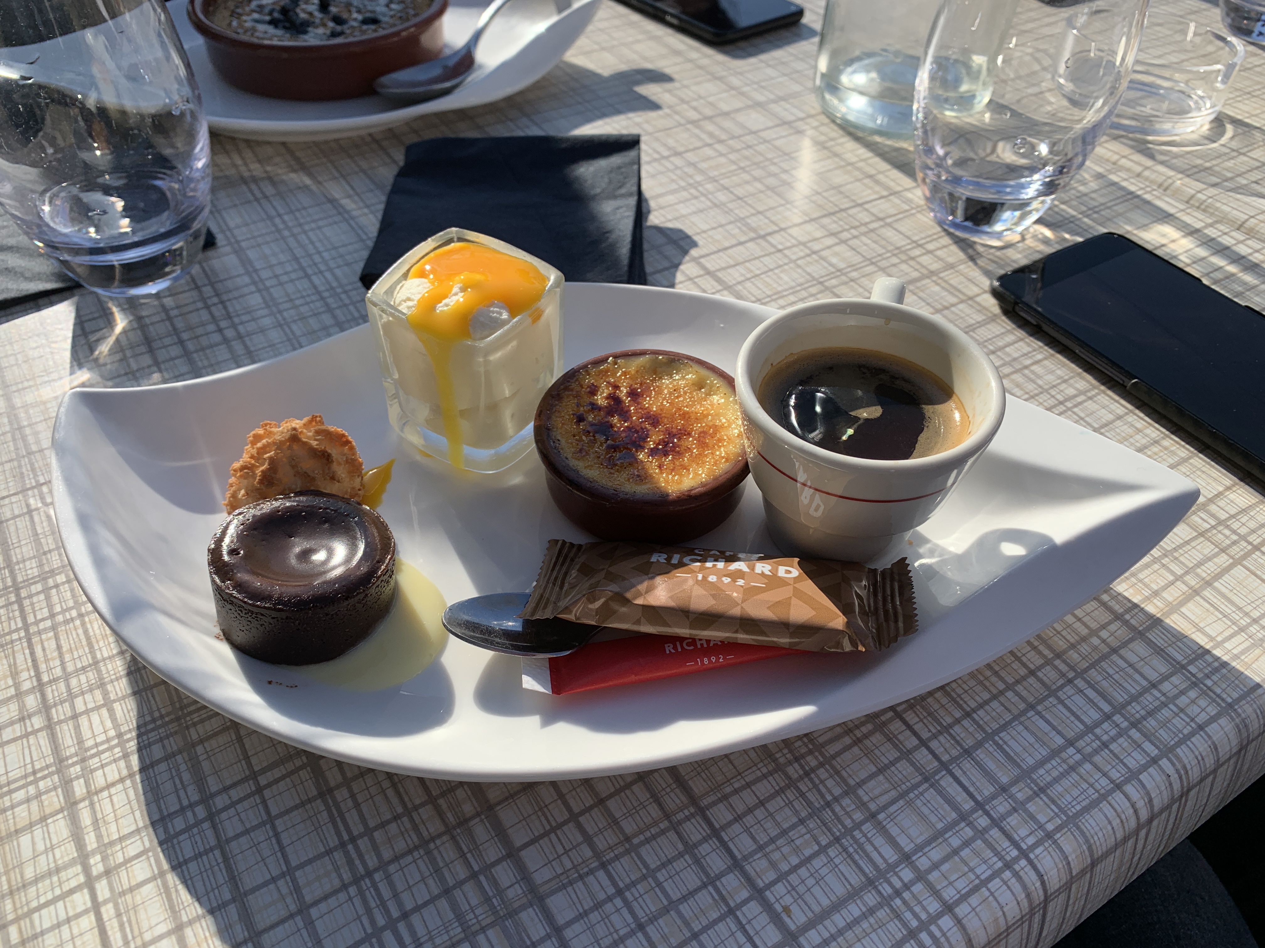 Une formule plat du jour + café gourmand à 20 euros. Plat du jour vraiment pas bon, je doute que ce soit du fait maison. Le café gourmand a un peu relevé le niveau. Service inégal, une personne très bien et une personne très peu avenante.