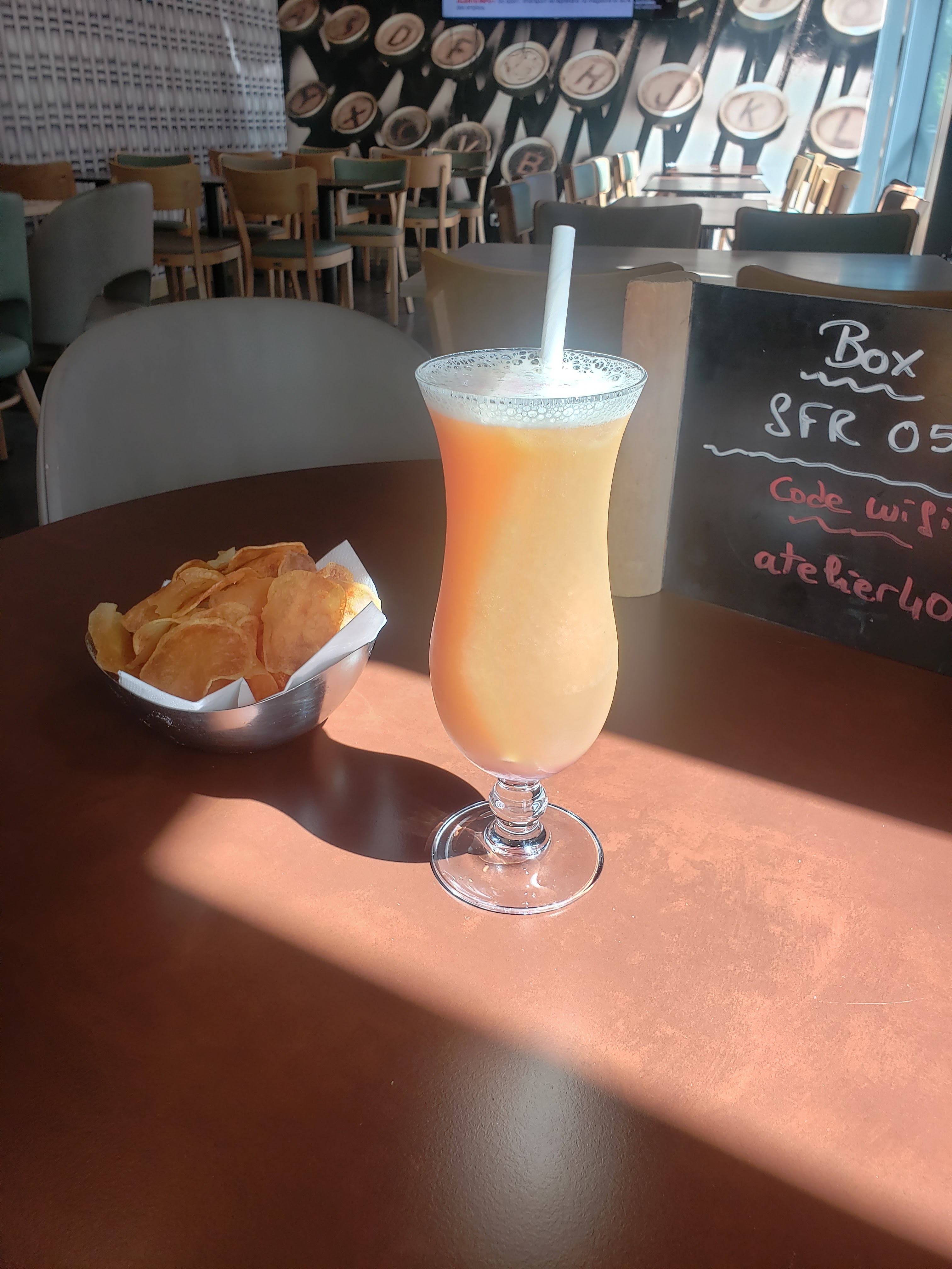 Je suis venue le soir pour prendre un verre d'après travail avec des collègues. Le personnel est très agréable. Le choix des cocktails est suffisant. Il y a également du vin. Le verre était agrémenté de chips ce qui est très agréable. L'été on peut profiter de la terrasse. Un endroit à retenir pour des moments conviviaux entre collègues. J'y suis également allée le midi pour déjeuner. La carte n'a rien d'exceptionnelle.