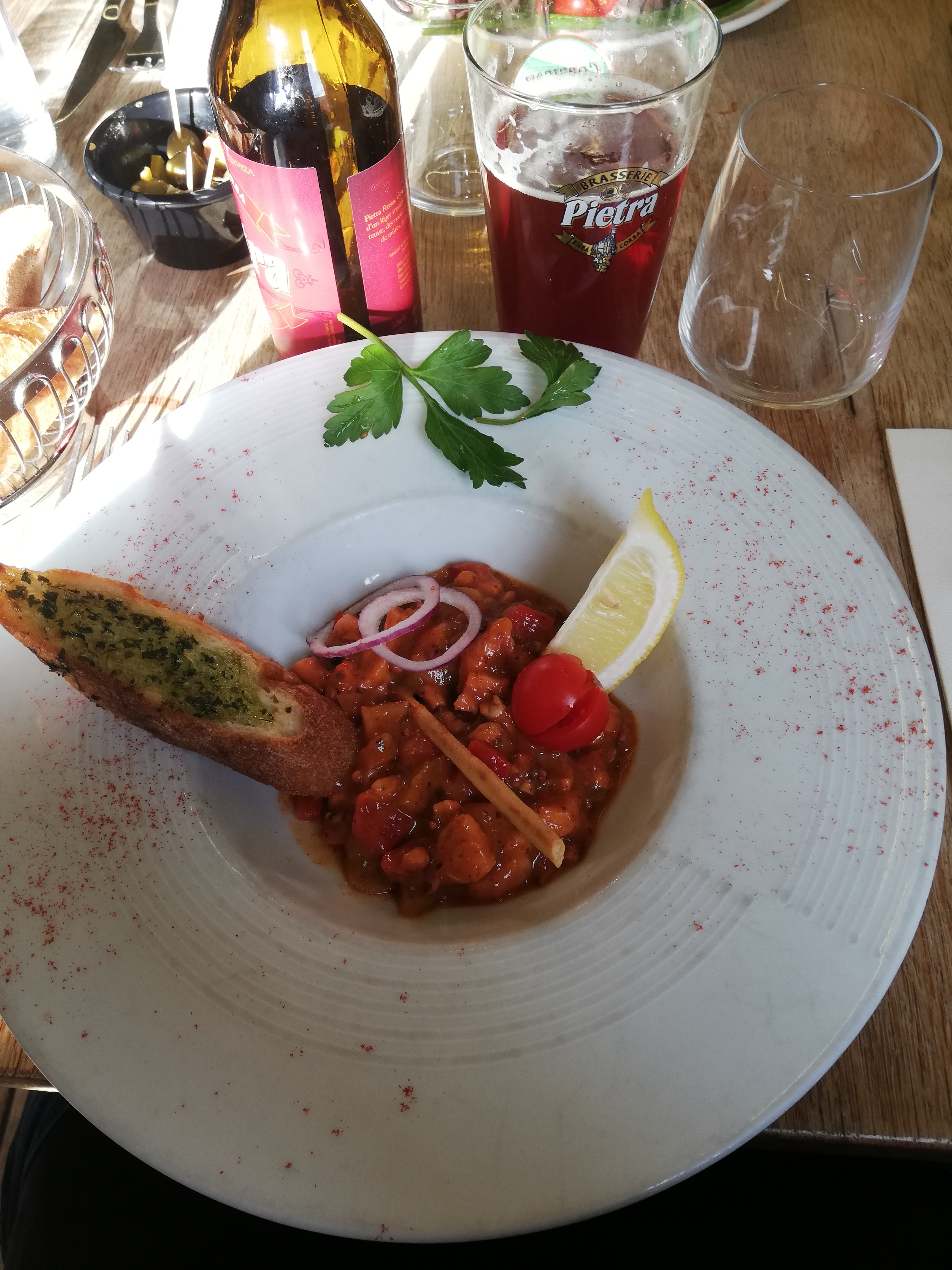 Génial pour le retour en immmertion. Un figatelli et une bonne Pietra bien fraîche rien de tel pour un petit apéro! Super terrasse avec le soleil on s'y croirait.... 🌴🌞