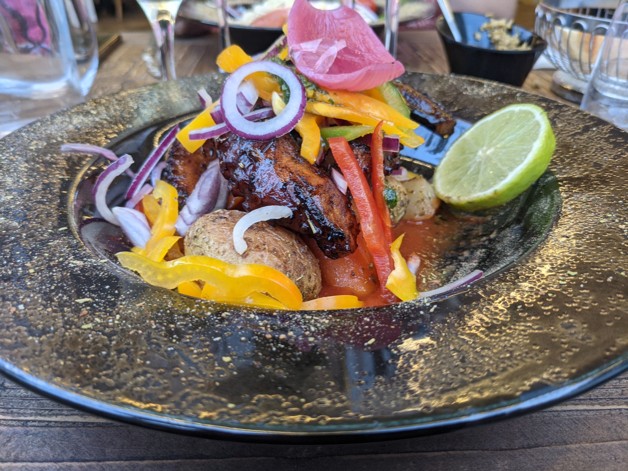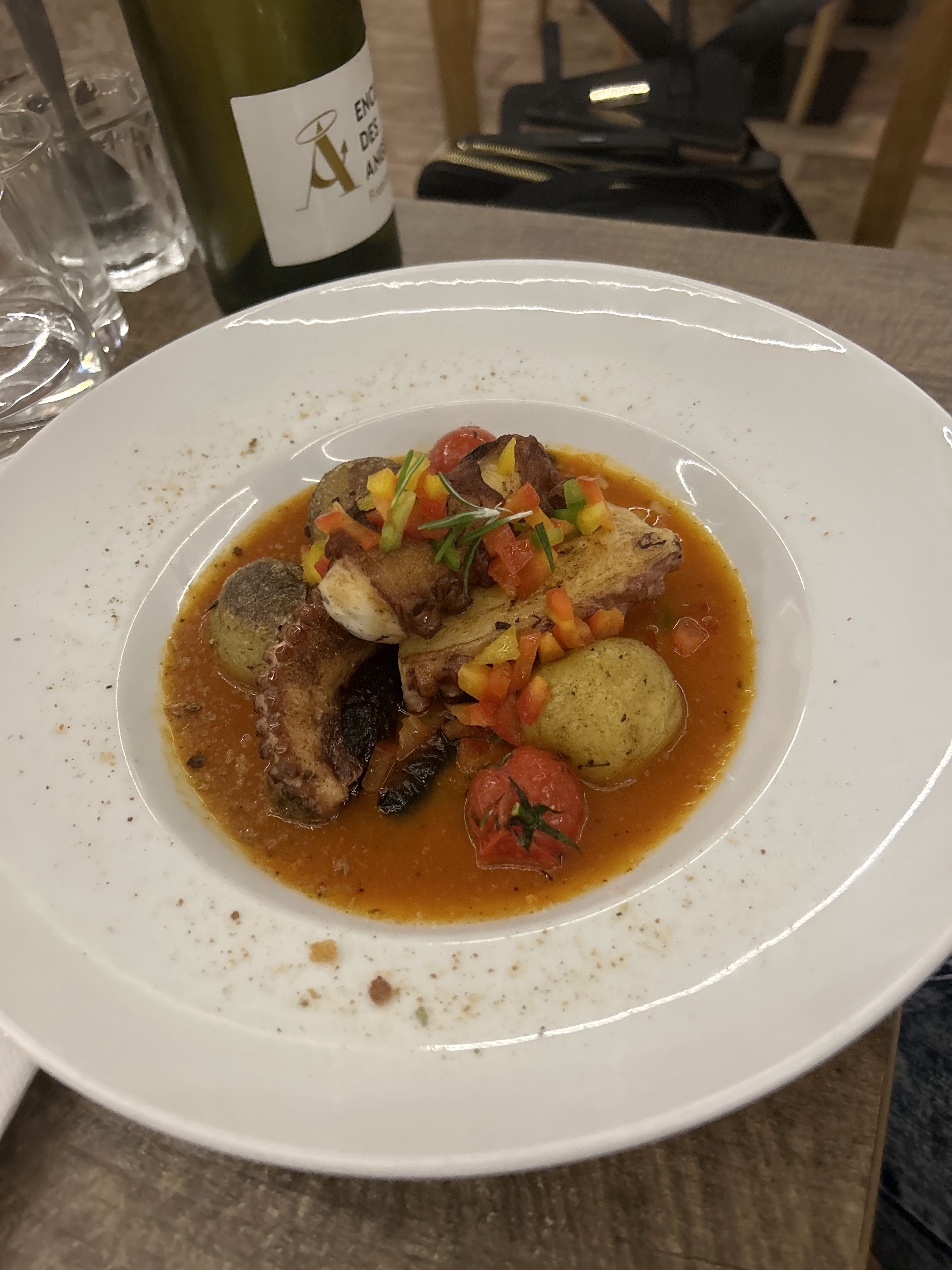Le cadre, le service excellent, le plat un rôti de veau aux herbes divin, le dessert pudding un peu lourd, seul bémol tablée de 10 personnes du coup juste 3 choix sur entrée, plat et dessert, dont 2 fois du poulpe en entrée et en plat, ça limite les choix. Sinon j'aurais mis 5 étoiles.